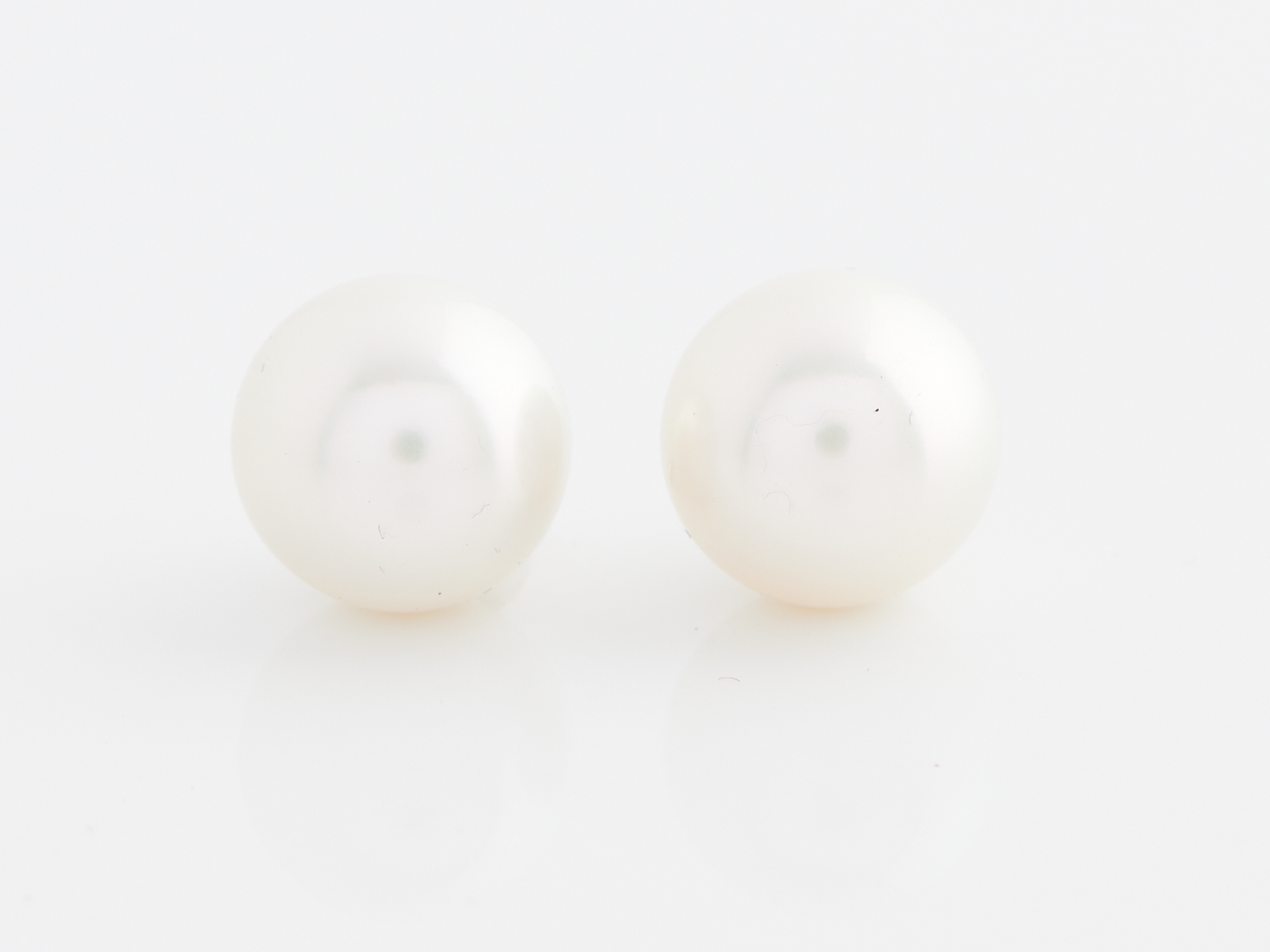 A PAIR OF SOUTH SEA PEARL DROP FITTINGS, THE PEARLS MEASURING APPROXIMATELY 13MM