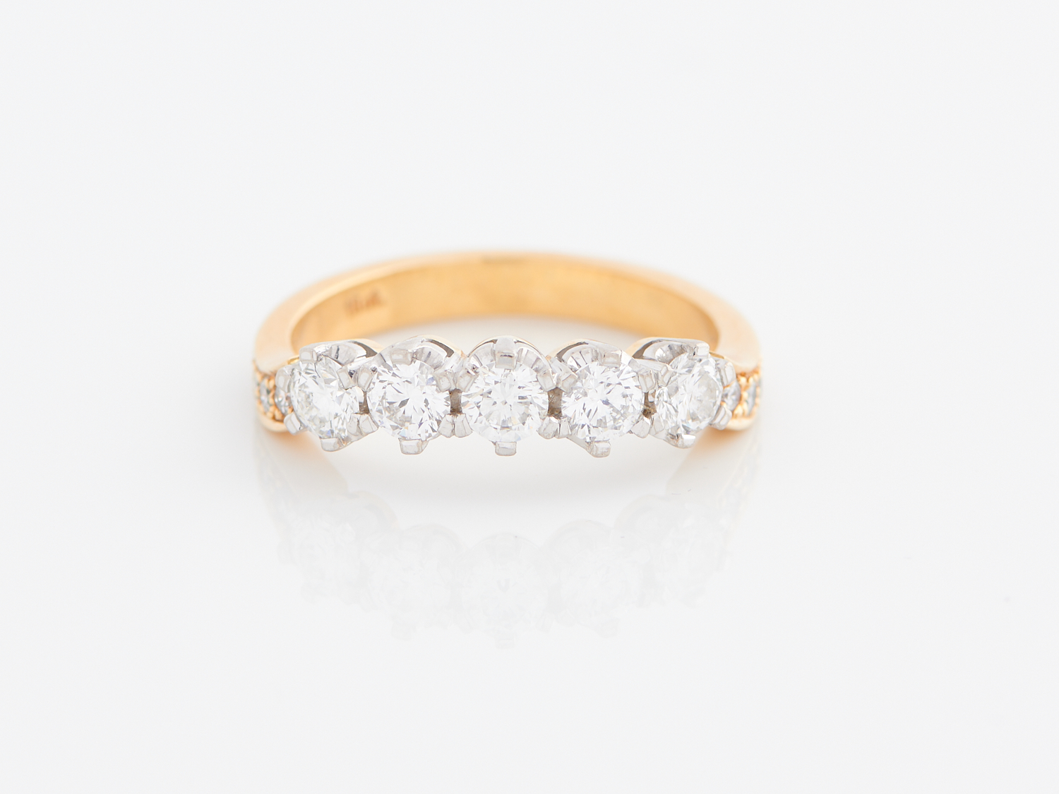 A FIVE STONE DIAMOND RING IN 18CT GOLD, THE DIAMONDS TOTALLING APPROXIMATELY 1.70CTS, SIZE U