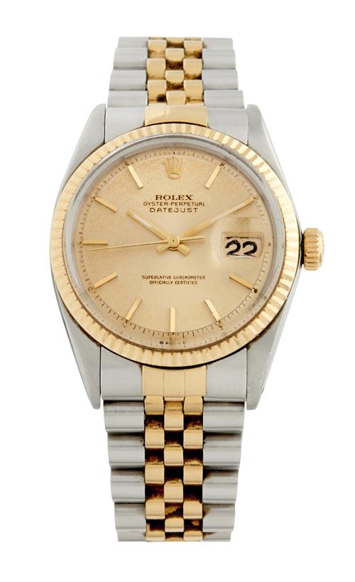 Closure: Rolex brushed and polished 18ct gold and stainless steel Jubilee link bracelet and folding clasp
