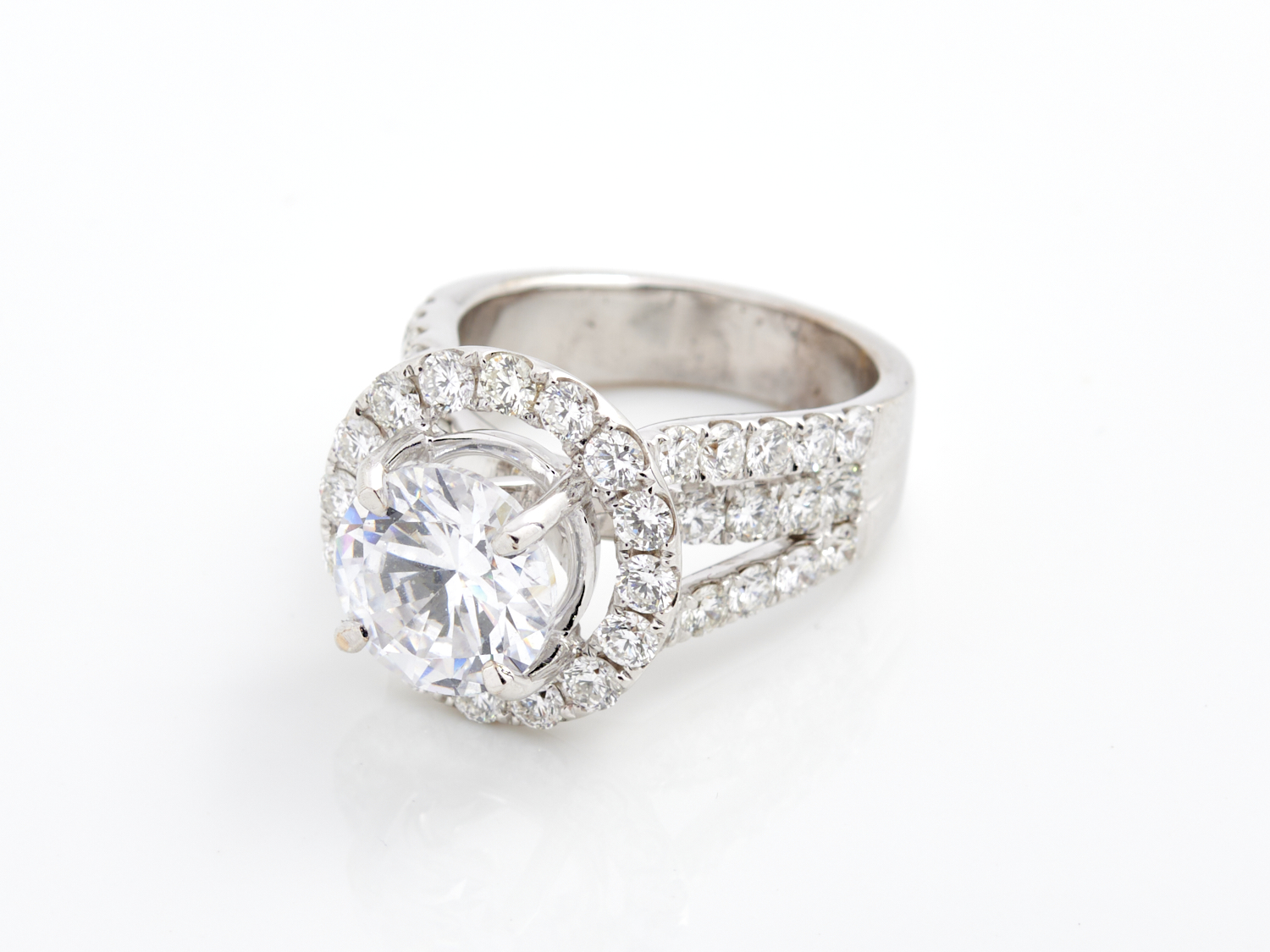 A CUBIC ZIRCONIA AND DIAMOND RING IN 18CT WHITE GOLD, THE DIAMONDS TOTALLING APPOXIMATELY 1.92CTS (G-H, SI), RING SIZE N, 12.4GMS