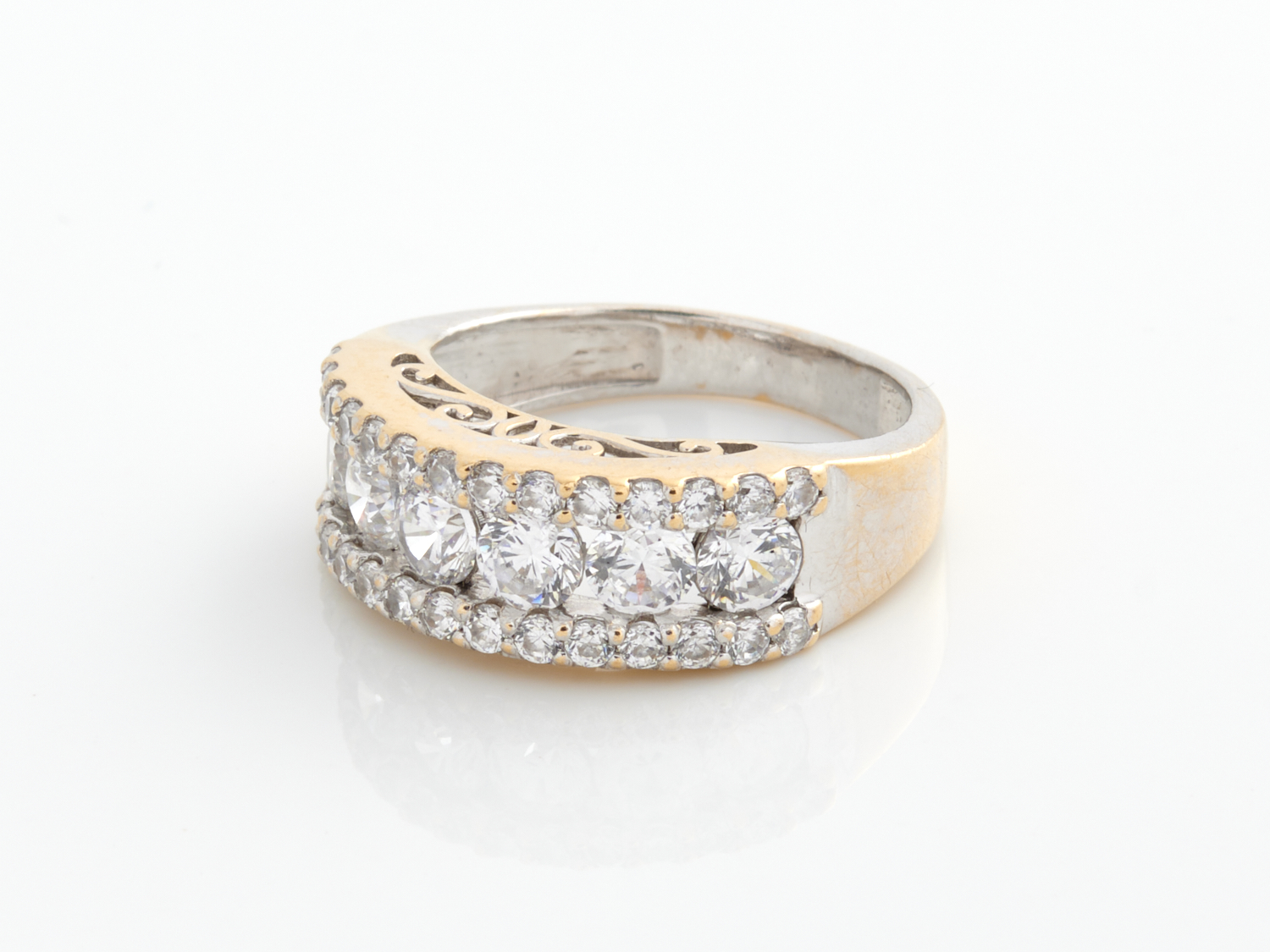 A CUBIC ZIRCONIA SET RING IN RHODIUM PLATED 18CT GOLD, RING I, 3.6GMS
