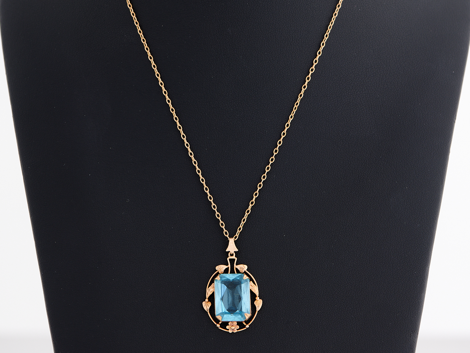 AN EDWARDIAN PASTE SET PENDANT IN GOLD LINED SILVER, TOTAL LENGTH APPROXIMATELY 424MM