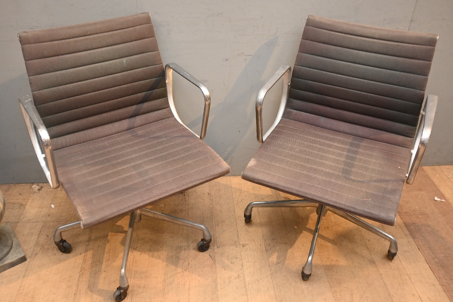 A PAIR OF CHARLES & RAY EAMES GROUP CHAIRS FOR HERMAN MILLER (A/F) (83H X 58W X 60D CM) (LEONARD JOEL DELIVERY SIZE: X-LARGE)