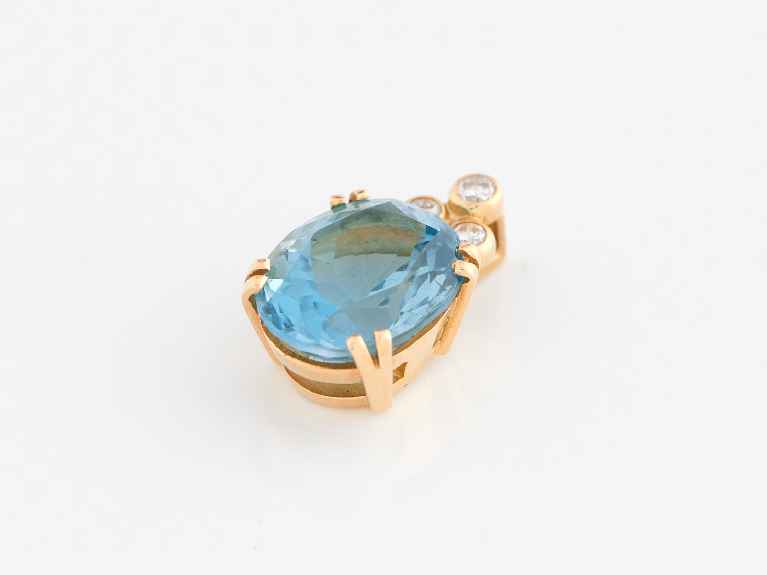 AN AQUAMARINE, DIAMOND AND CUBIC ZIRCONIA SET PENDANT, APPROXIMATE LENGTH 16MM, ACCOMPANIED BY A VALUATION