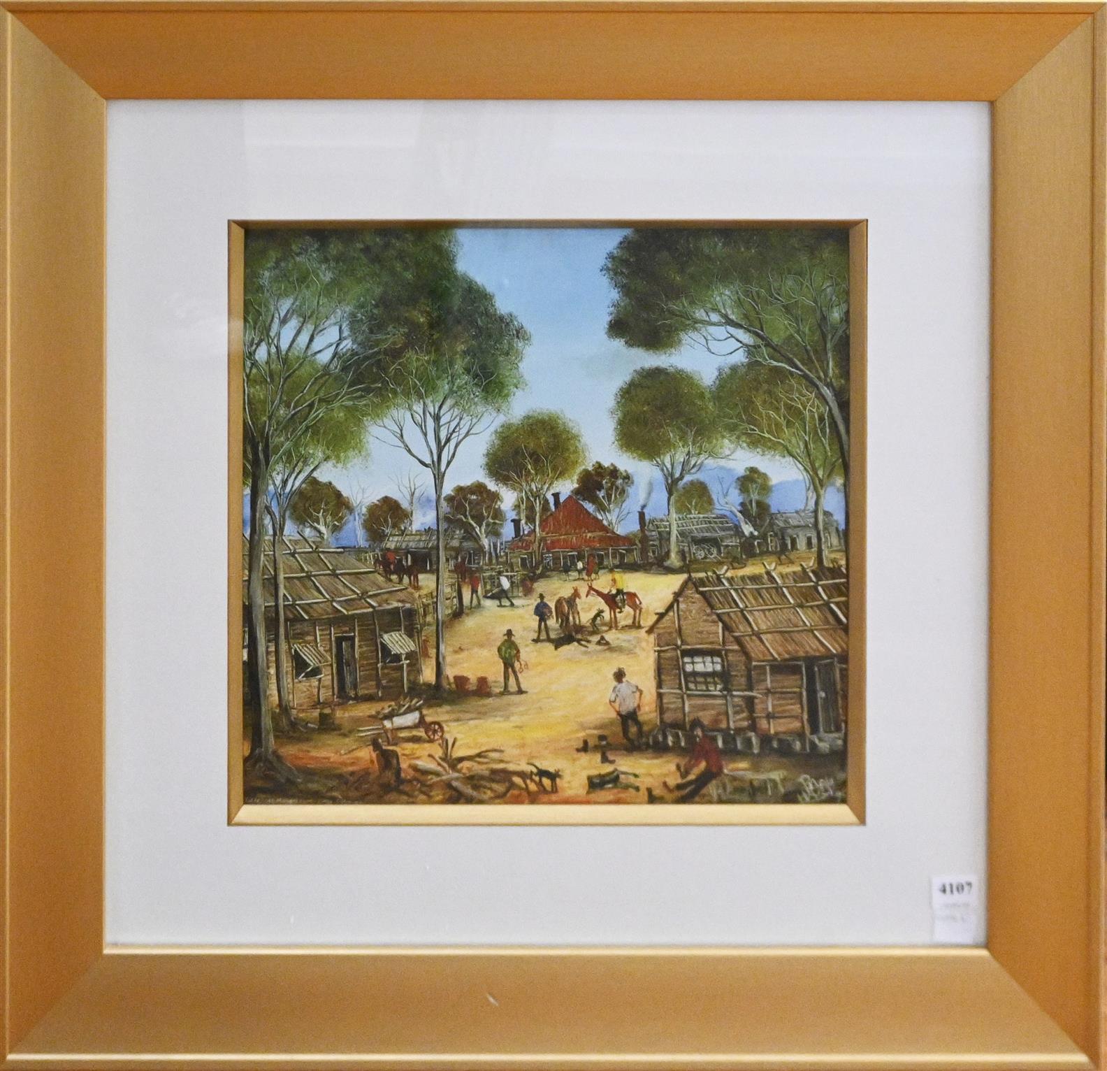 PRO HART, LANDSCAPE, OIL ON BOARD, SIGNED LOWER LEFT, 15.5 X 20CM, FRAME SIZE: 41 X 45.5CM