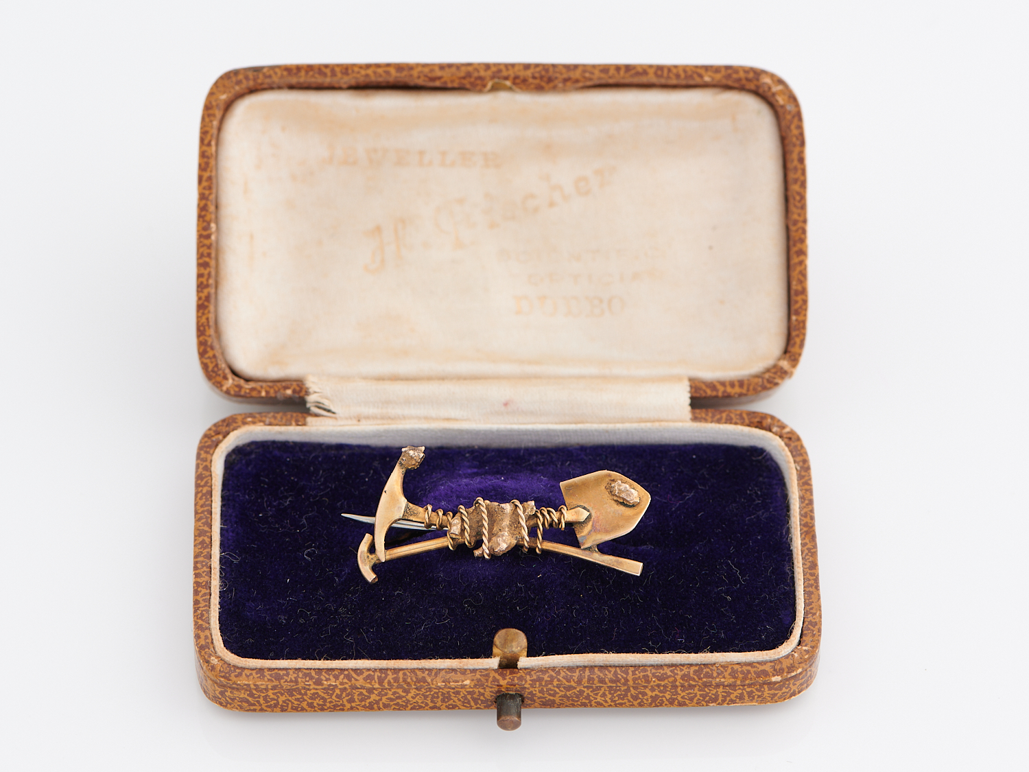 A GOLDFIELDS BROOCH IN 9CT GOLD, 2.6GMS, BOXED