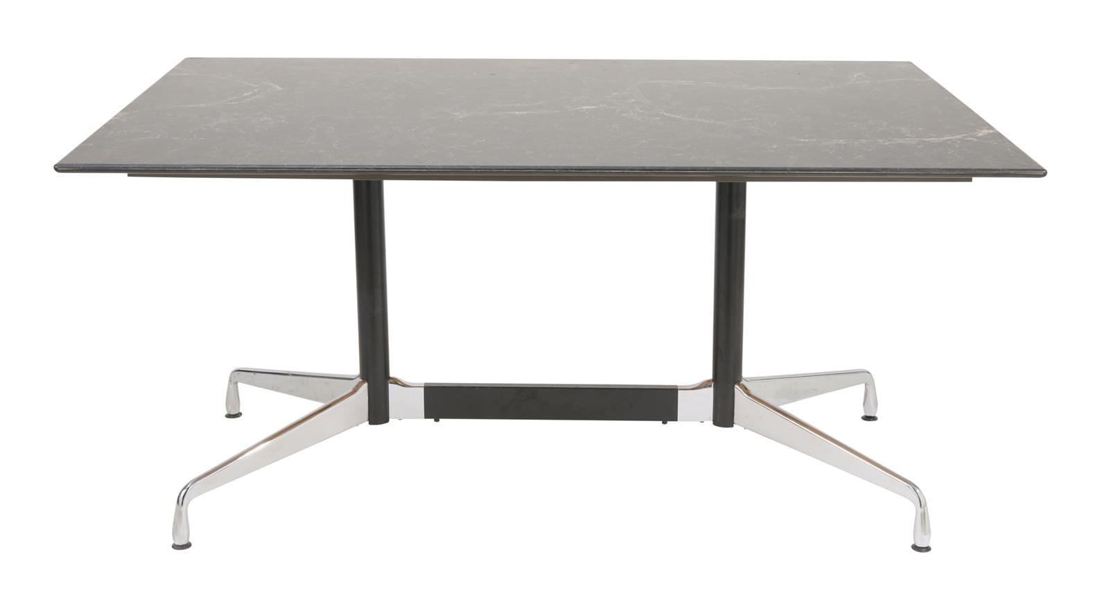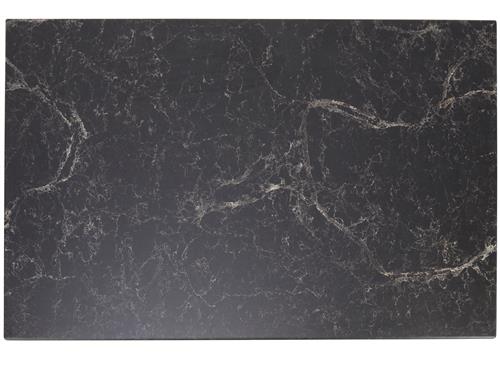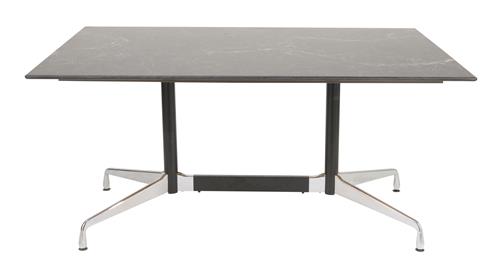 Polished and black powder coated metal frame with a black rectangular marble top over MDF.