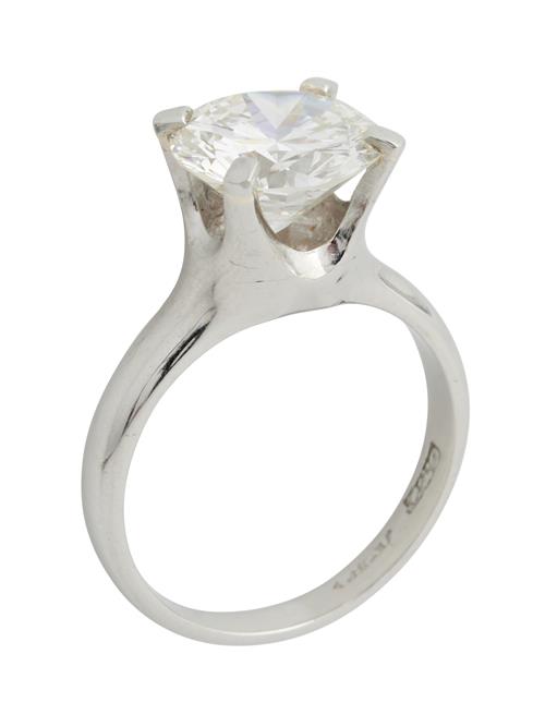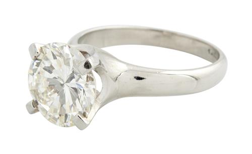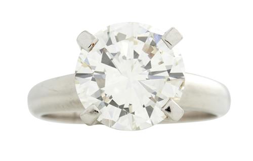 Claw-set with a brilliant-cut diamond weighing approximately 2.90 carats, size K.