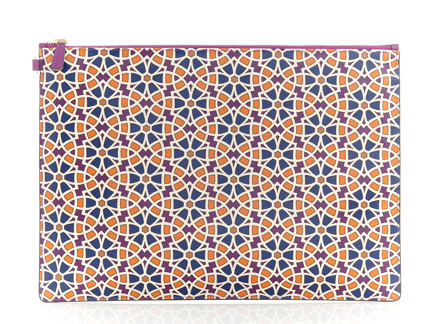 BRAUN BUFFEL, LEATHER ENVELOPE CLUTCH, STYLED IN MULTI-COLOURED COATED CANVAS WITH GOLD TONE METAL TRIM, 34 x 24cm.