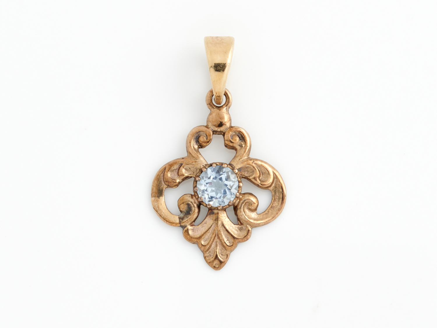 AN AQUAMARINE SET PENDANT IN 9CT GOLD, 30MM, 1.6GMS