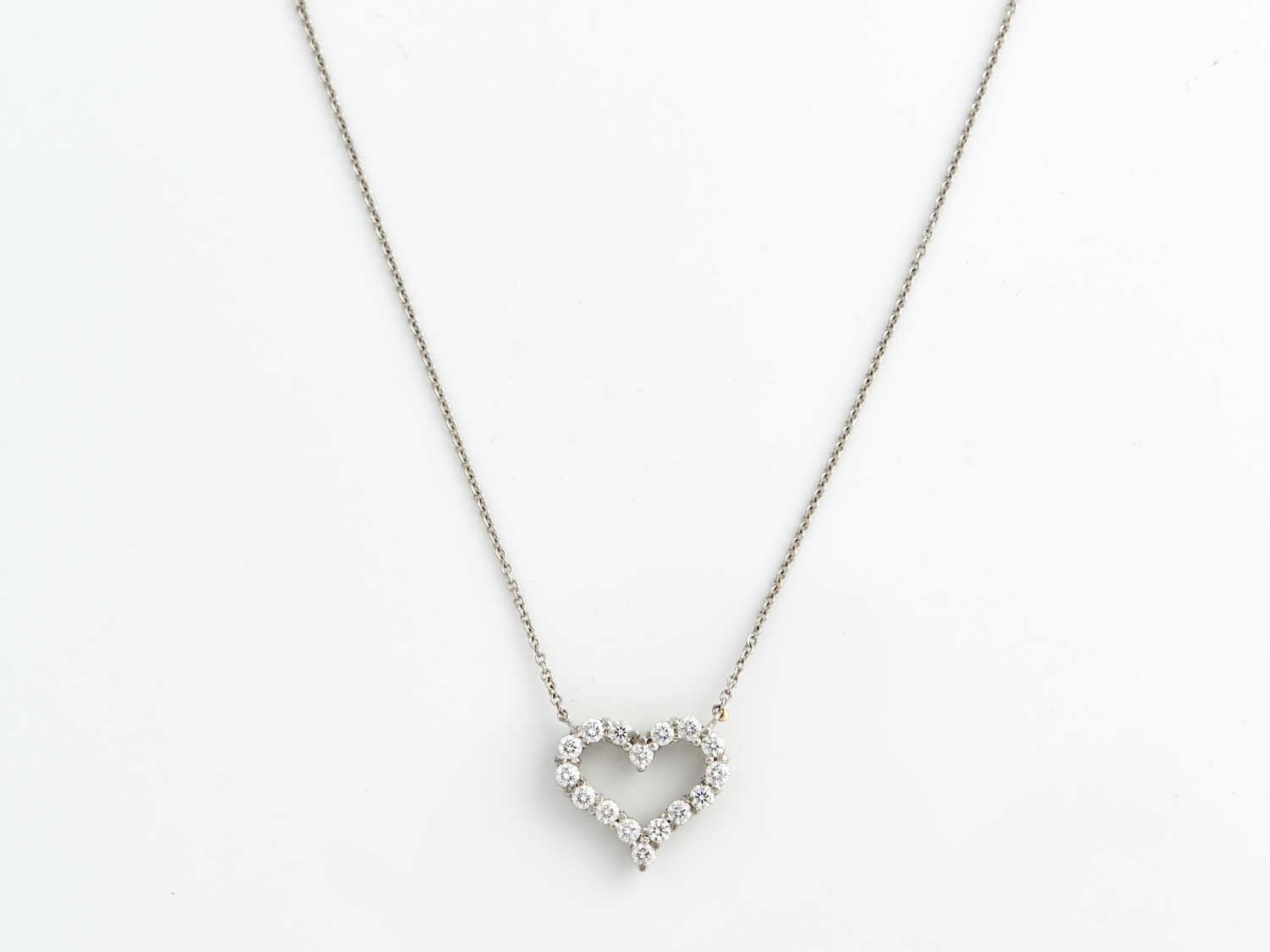 TIFFANY & CO., AN OPEN WORK DIAMOND HEART PENDANT ON CHAIN IN PLATINUM, THE PENDANT MEASURING 15.35 X 12.41MM