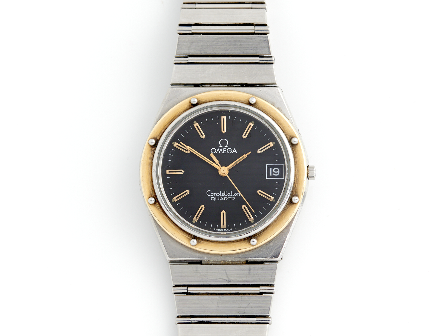 OMEGA, A CONSTELLATION WRIST WATCH IN TWO TONE STAINLESS STEEL QUARTZ MOVEMENT, DATE APPERTURE AT THREE, THE DIAL APPOXIMATELY 35MM