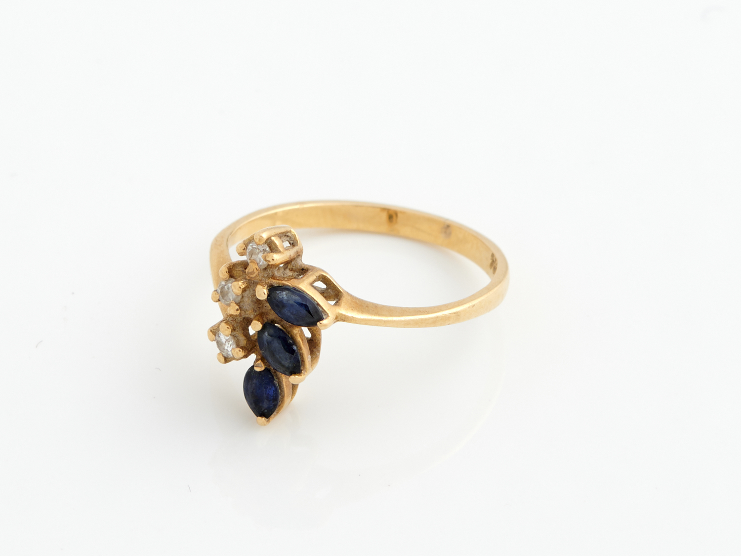 A SAPPHIRE AND DIAMOND RING IN 18CT GOLD, RING SIZE J, 1.8GMS