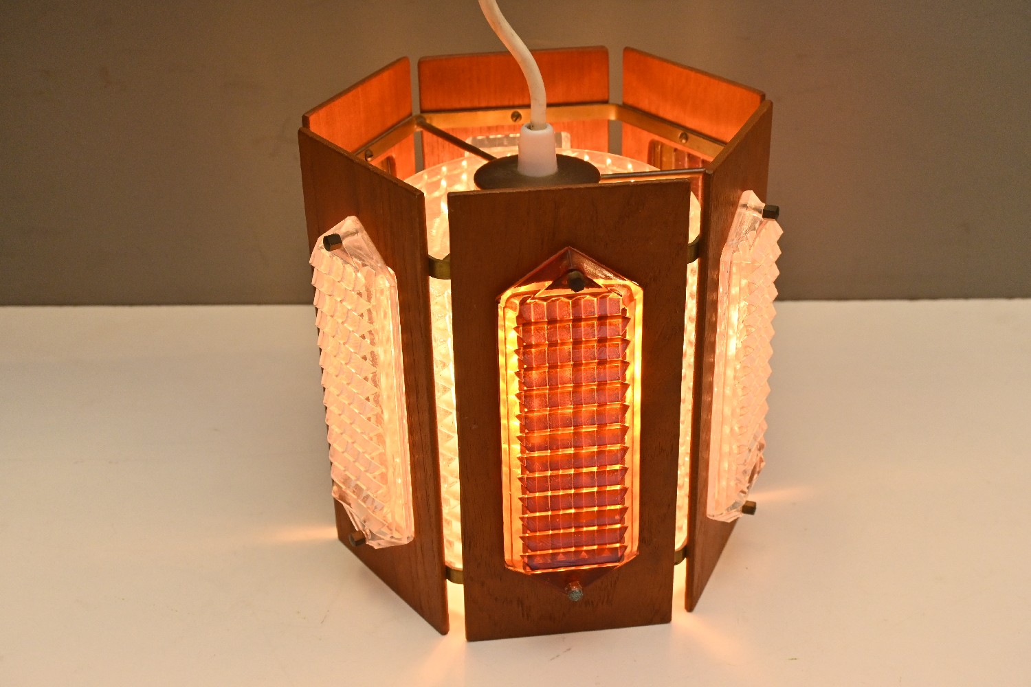 A DANISH MID-CENTURY TEAK & GLASS CEILING LAMP (21H X 21D CM) (LEONARD JOEL DELIVERY SIZE: LARGE)