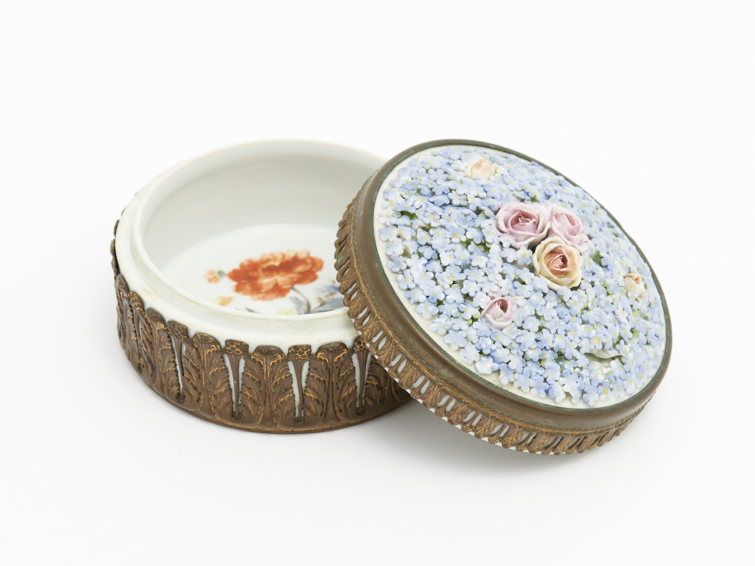 A 19TH C. LIMOGES BRASS MOUNTED FIGURAL PORCELAIN BOX, H.9CM, LEONARD JOEL LOCAL DELIVERY: SMALL
