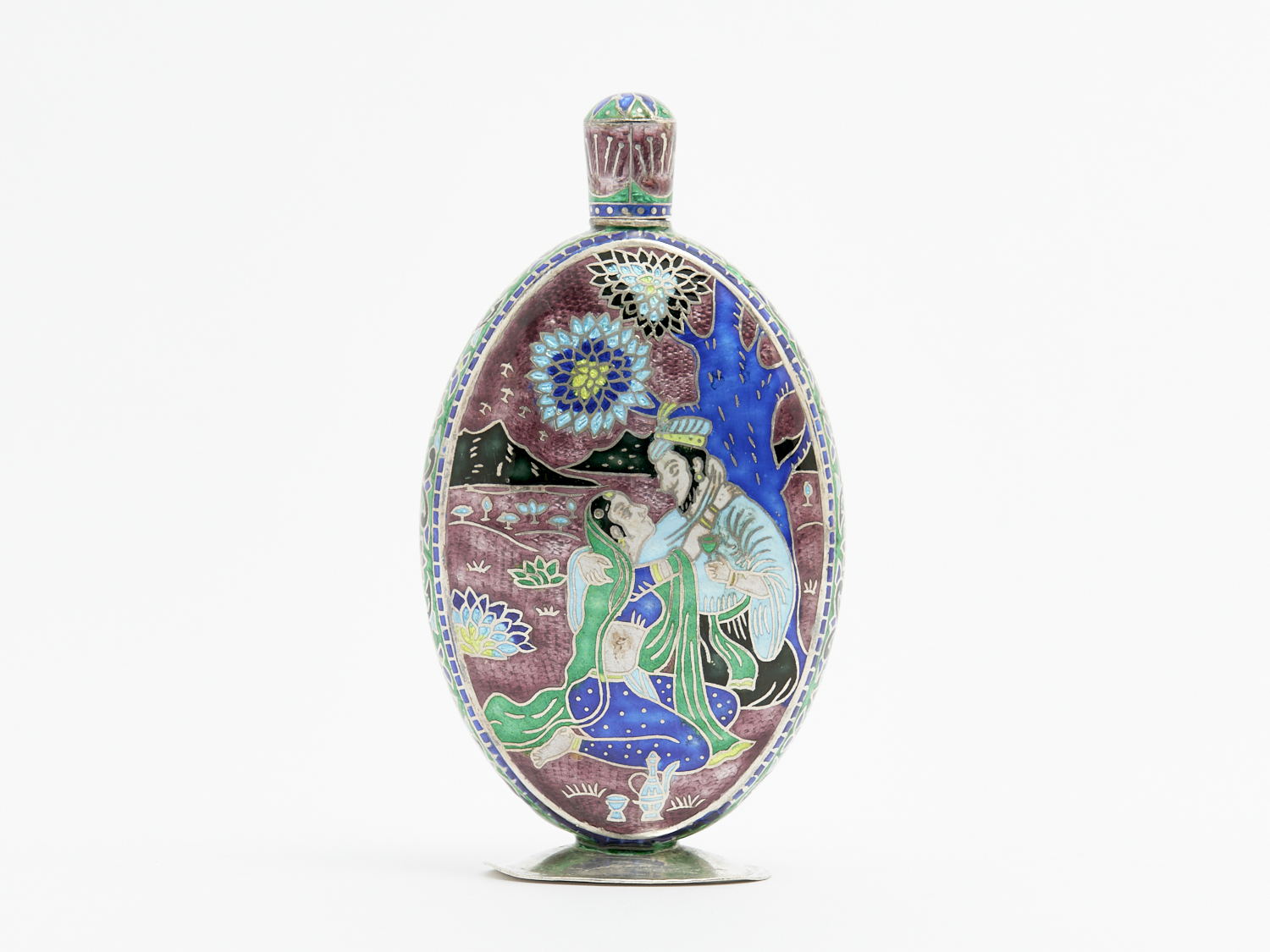 A 925 SILVER ENAMELLED PERSIAN BOTTLE H.14CM, 154G, LEONARD JOEL LOCAL DELIVERY: SMALL