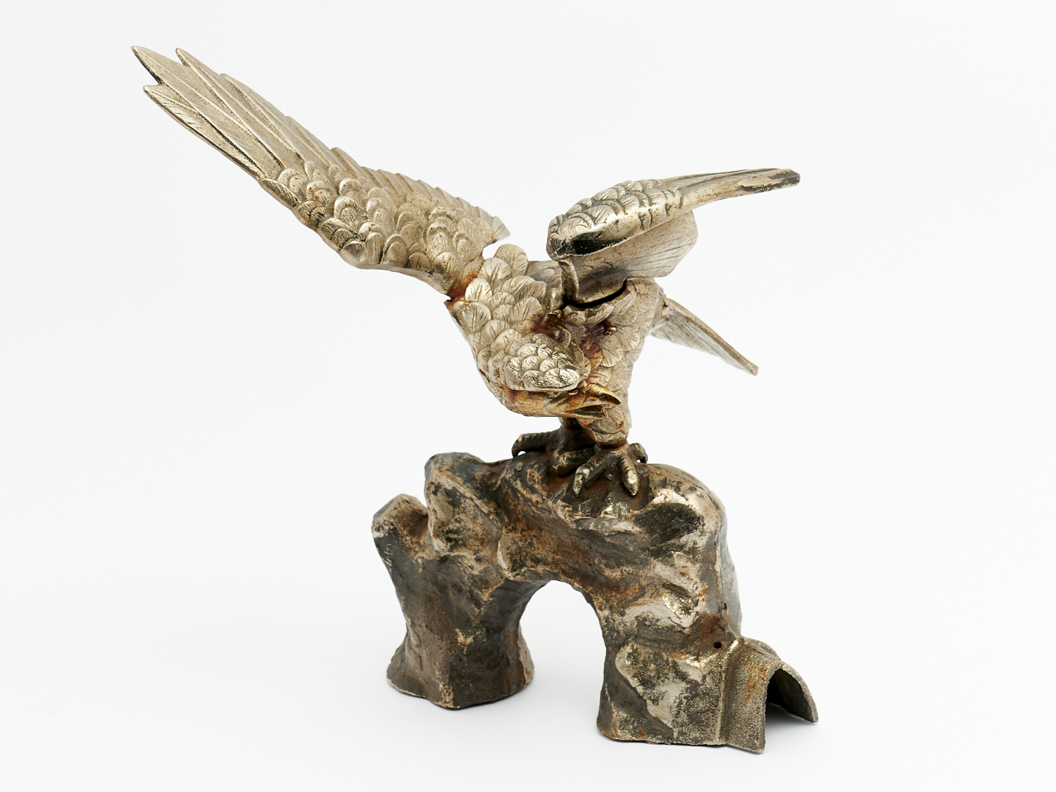 A VINTAGE GILDED CAST IRON HAWK ON ROCKY OUTCROP H.39CM, LEONARD JOEL LOCAL DELIVERY: MEDIUM