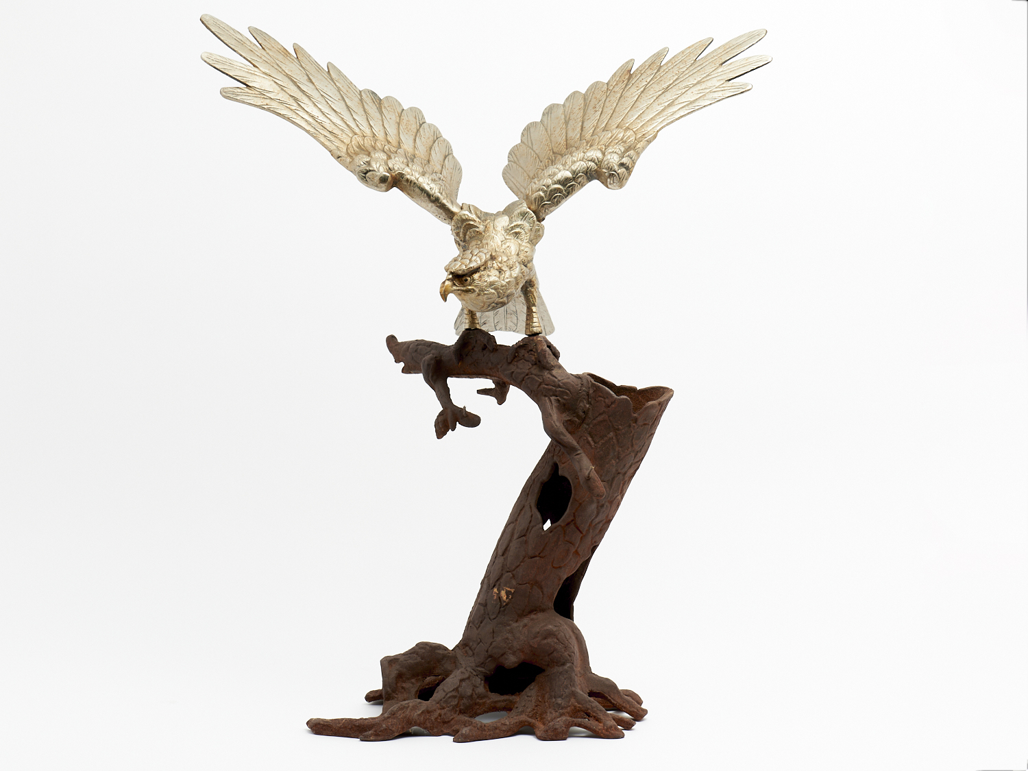 A VINTAGE LARGE SILVERED CAST IRON HAWK ON ROCKY OUTCROP H.69CM, LEONARD JOEL LOCAL DELIVERY: MEDIUM