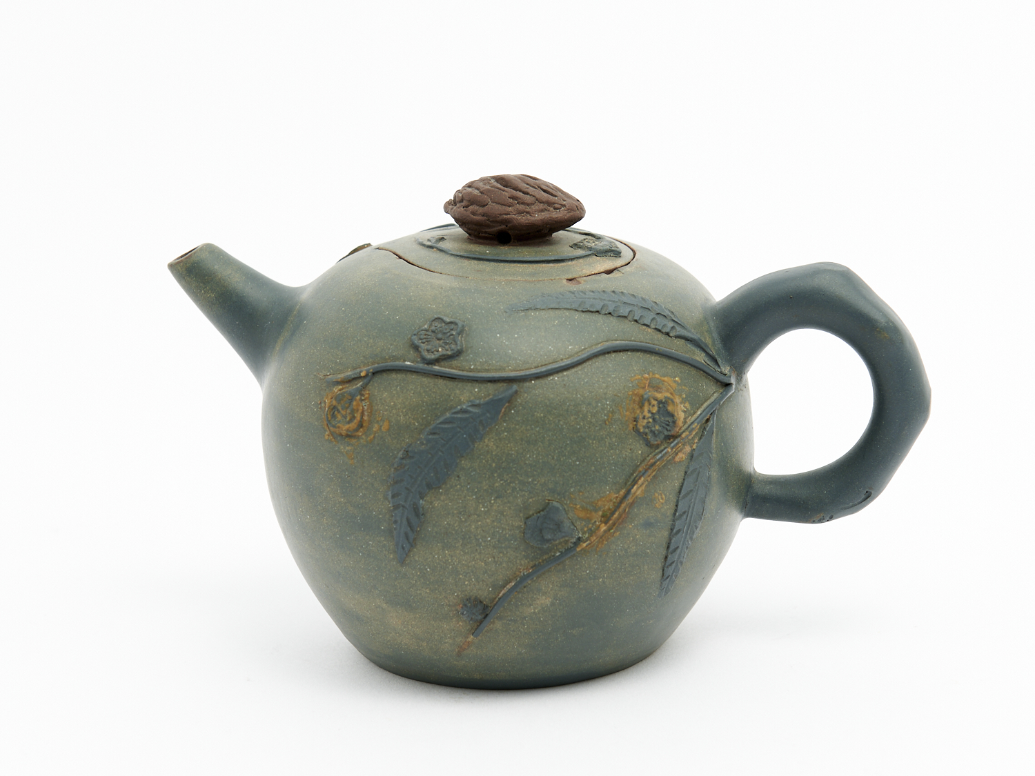 A SIGNED CHINESE BLUE TERRACOTTA TEAPOT H.10CM, LEONARD JOEL LOCAL DELIVERY: SMALL