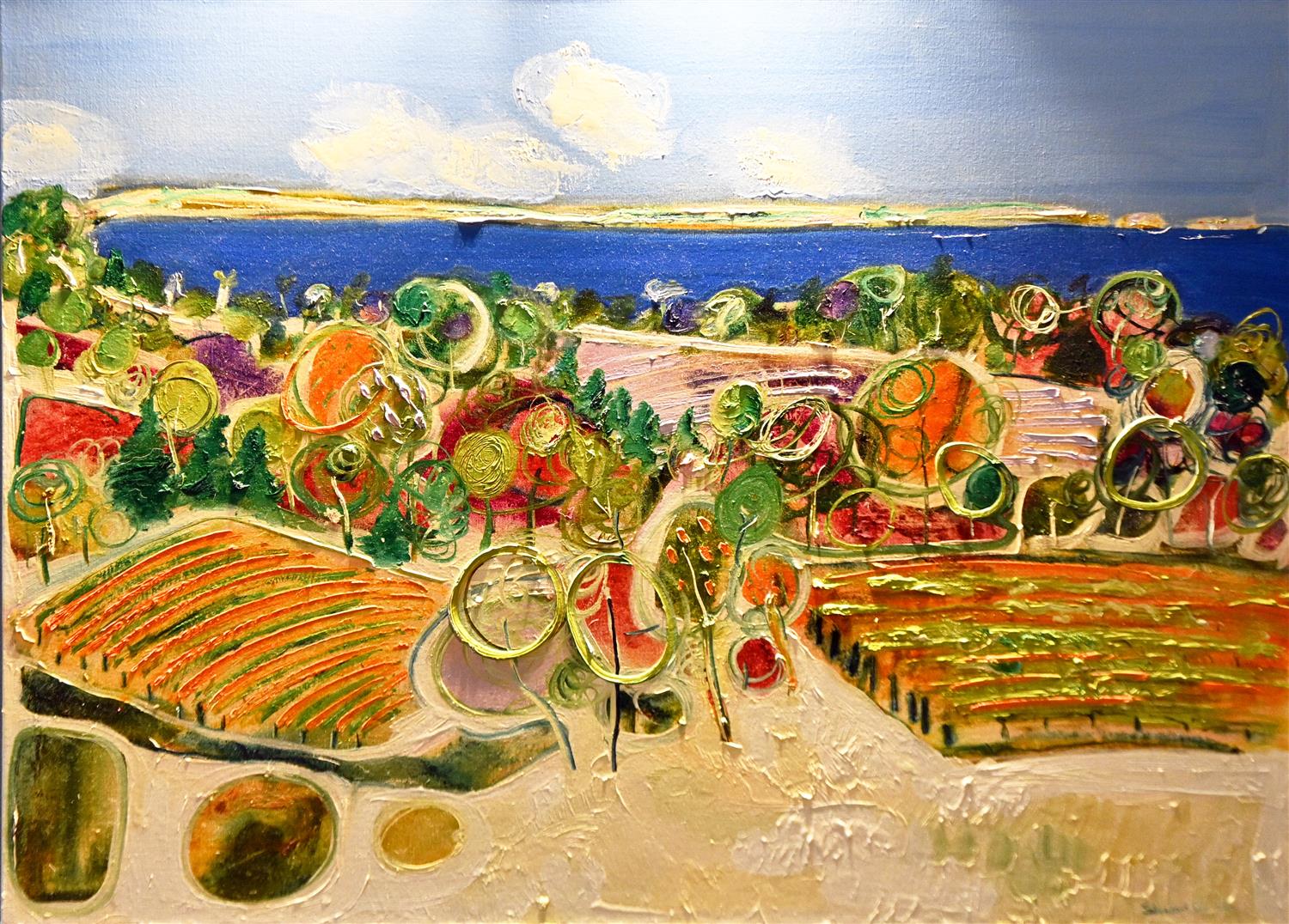 KEN KNIGHT, COASTAL LANDSCAPE, OIL ON BOARD, SIGNED LOWER LEFT, 57 X 75CM, FRAME SIZE: 77 X 94CM