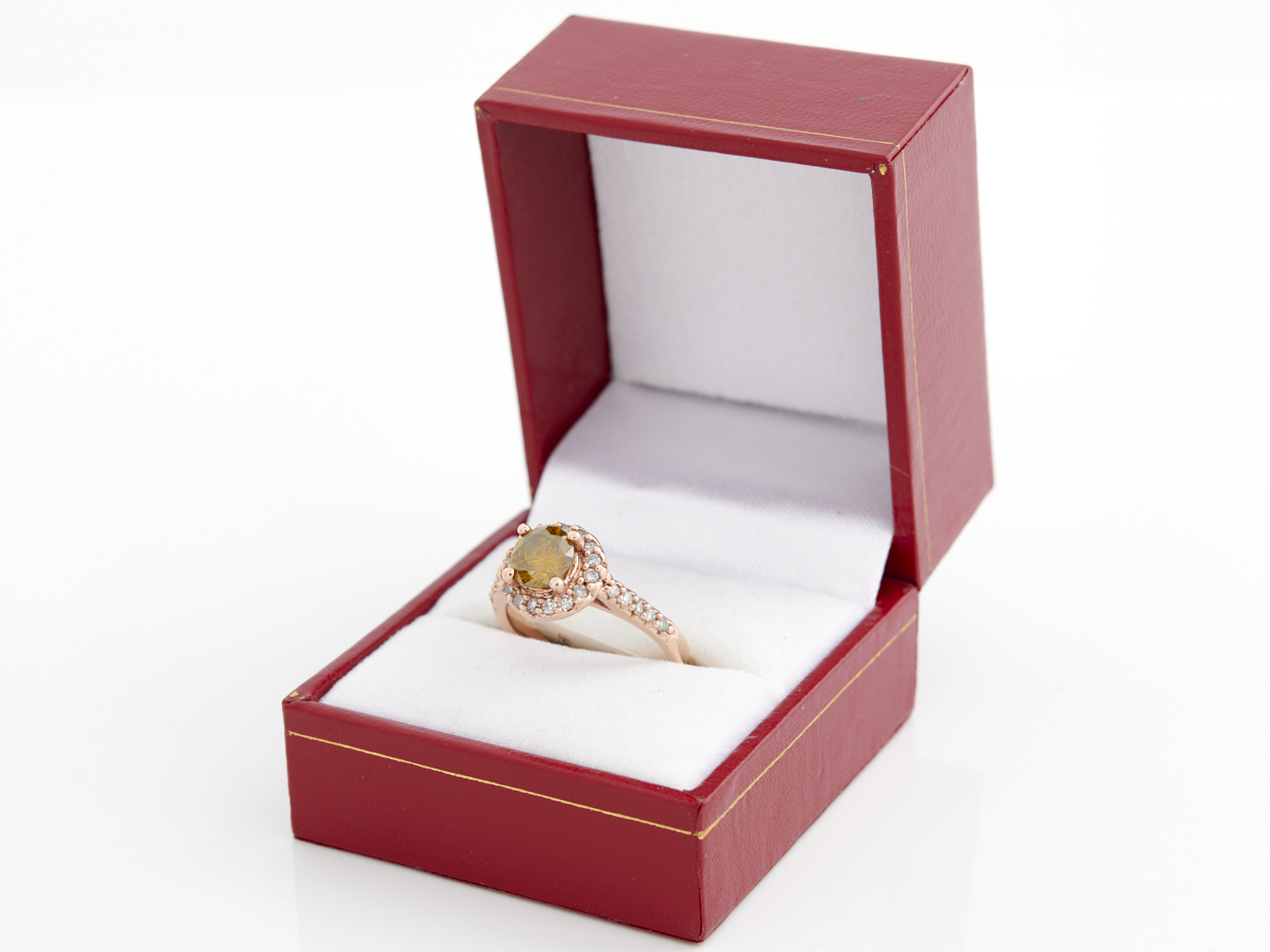 A DIAMOND SET RING IN 10CT ROSE GOLD, CENTRING A FANCY YELLOW DIAMOND WEIGHING APPROXIMATELY 1.02CTS (I2/I3), ACCOMPANIED BY A VALUATION