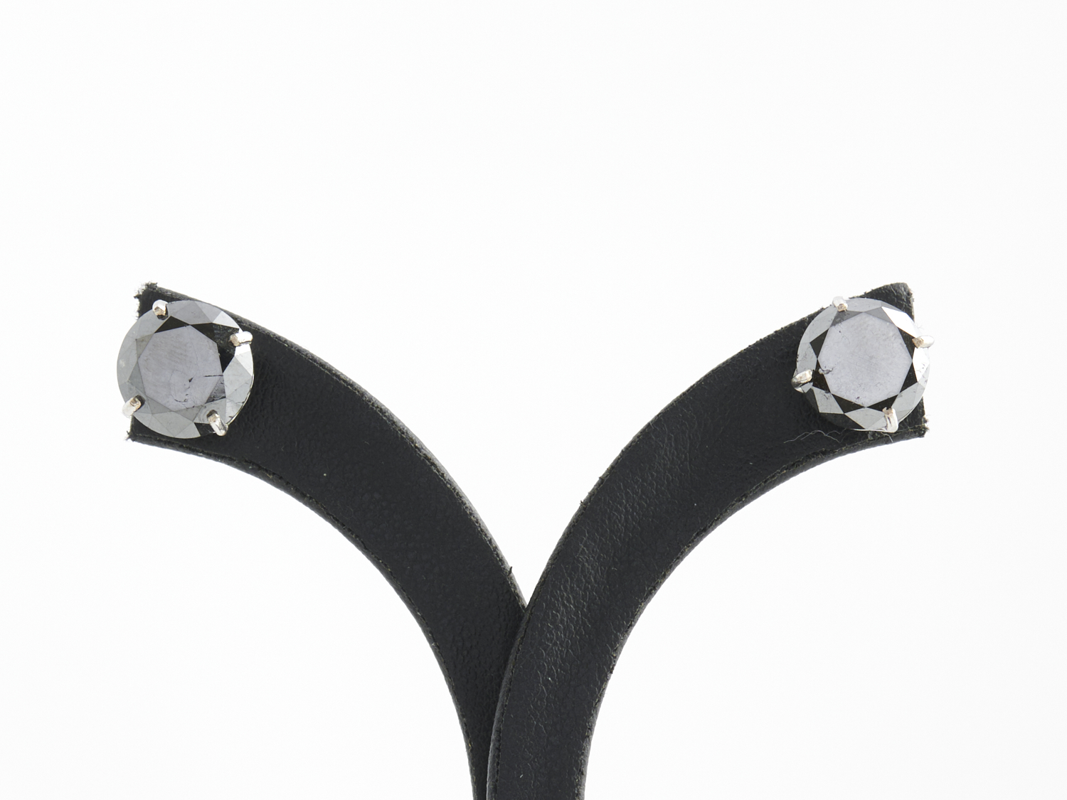 A PAIR OF BLACK DIAMOND STUD EARRINGS IN 18CT WHITE GOLD, THE DIAMONDS TOTALLING 7.94CTS, TO POST AND BUTTERFLY FITTINGS, ACCOMPANIED BY VALUATION