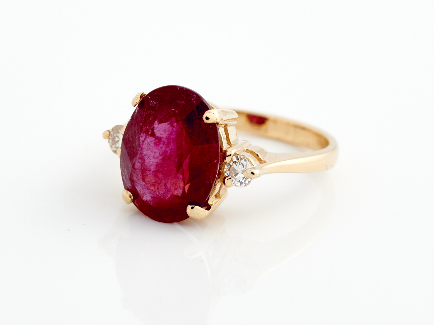 A RUBELLITE TOURMALINE AND DIAMOND RING IN 18CT GOLD, THE RUBELLITE WEIGHING 5.30CTS, SIZE M, 5.4GMS