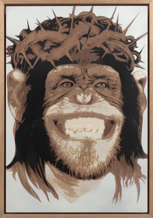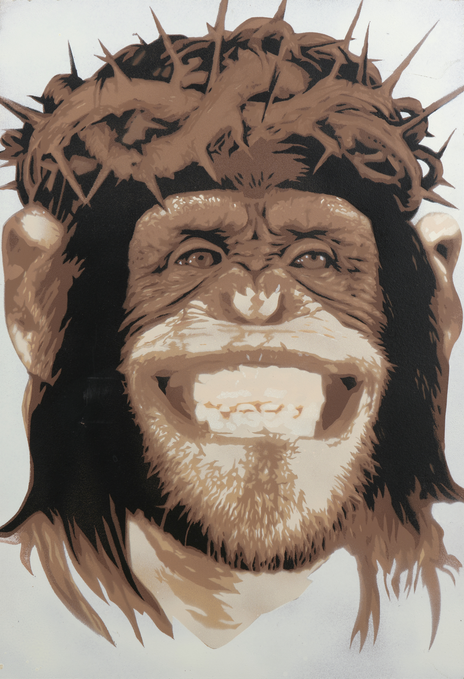 signed and titled verso: "JESUS H. CHIMP"/ E.L.K (partially concealed)