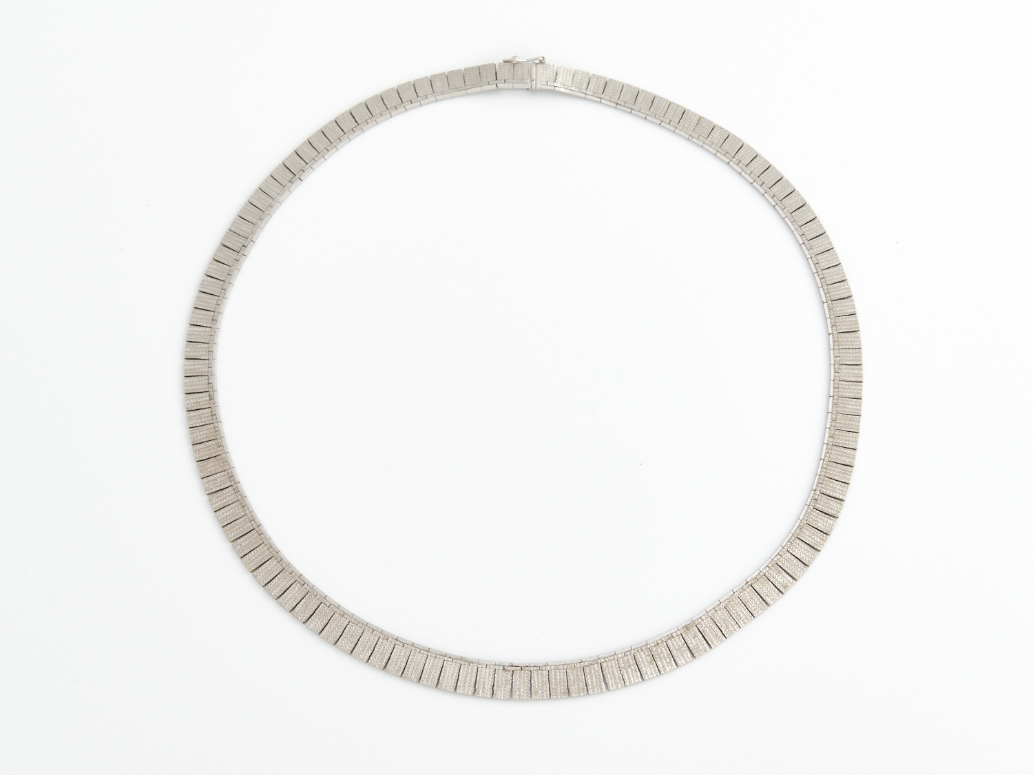 A TEXTURED COLLAR NECKLACE IN 18CT WHITE GOLD, 420MM, 47.4GMS