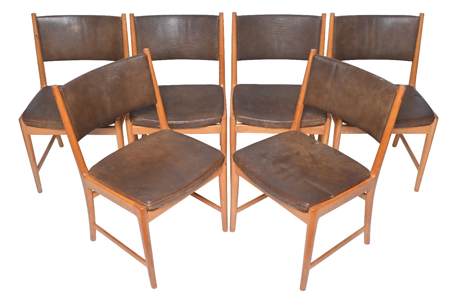 The chairs show consistent wear across both the frames and the leather itself.
