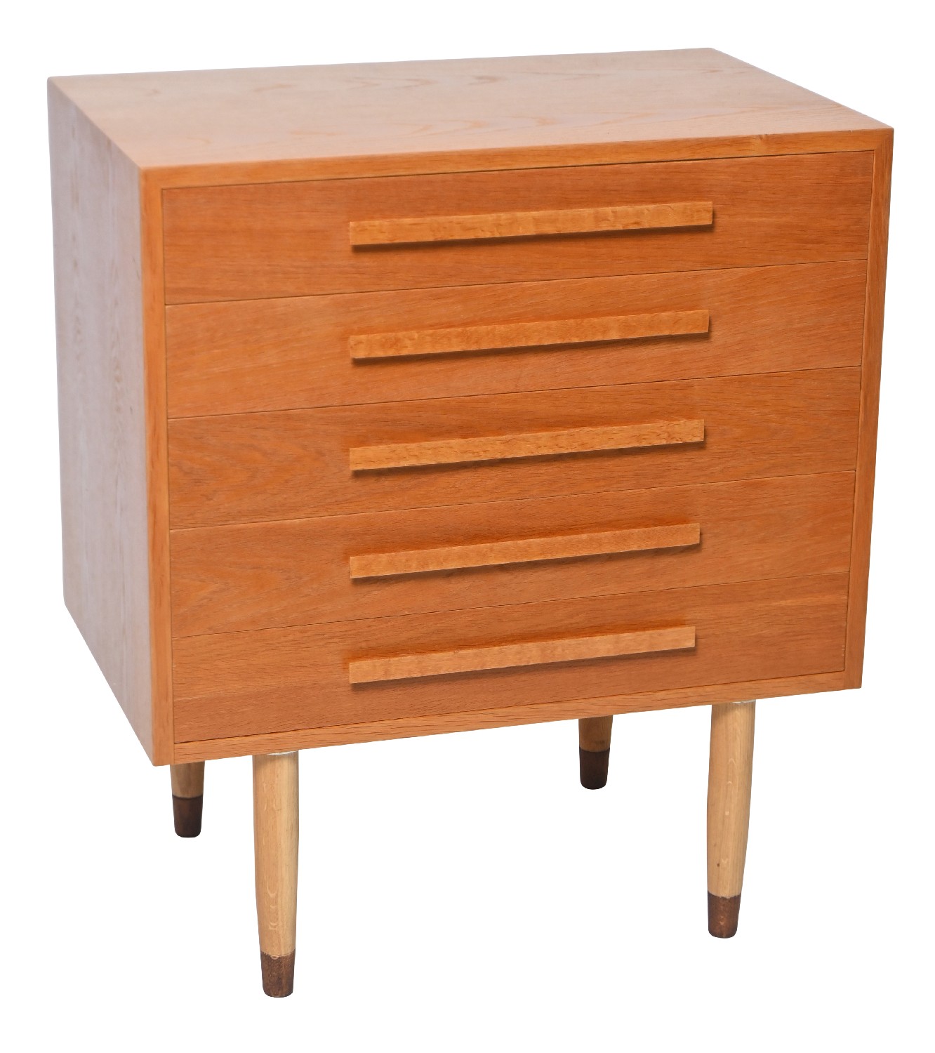 A DANISH CHEST OF FIVE DRAWERS WITH OAK VENEER (A/F) (82H X 71W X 46D CM) (LEONARD JOEL DELIVERY SIZE: LARGE)