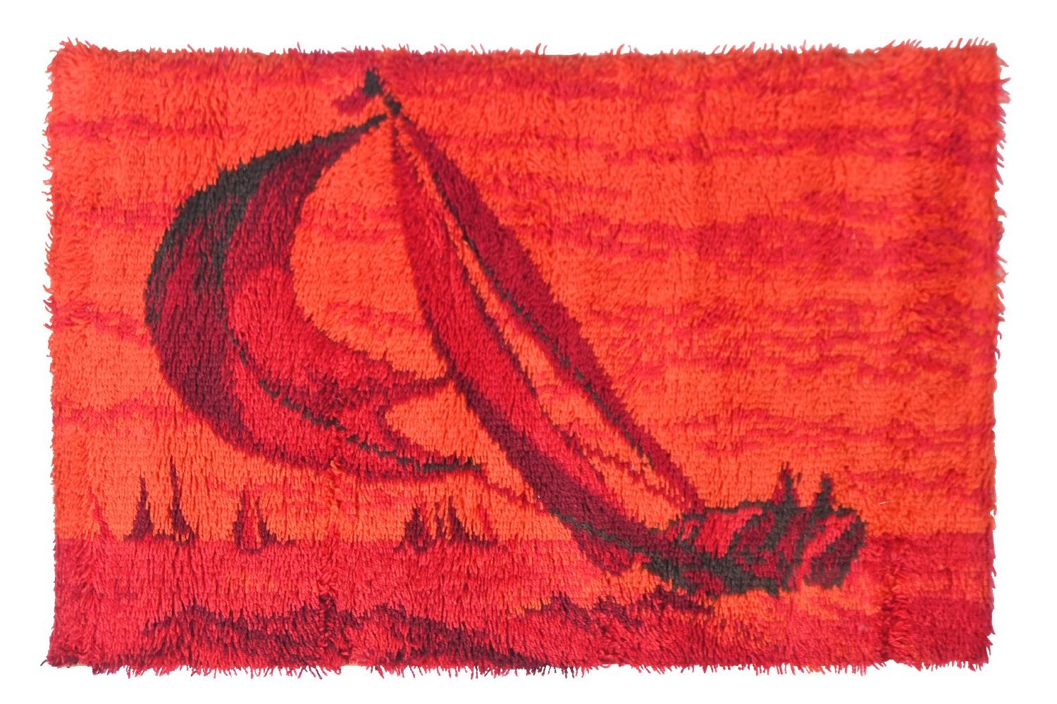 A 1960S SCANDINAVIAN RUG WITH YACHT MOTIF (105 X 70 CM)