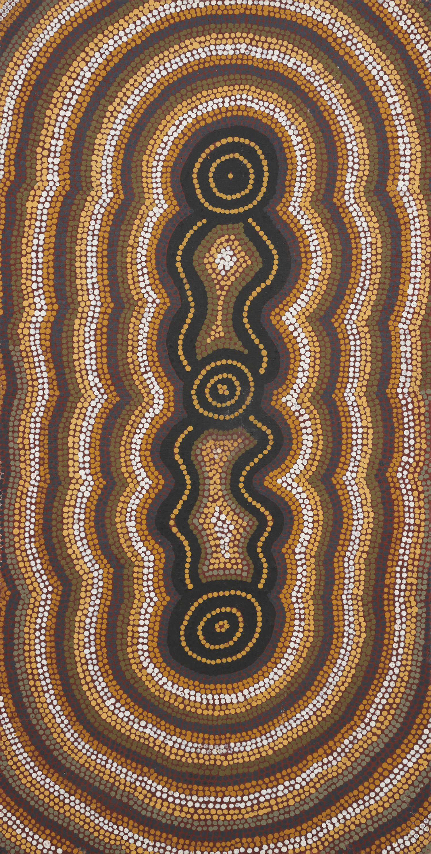 "Winparrku, a hill west of Kintore, is the site depicted in this painting. As the story associated with this site forms part of the Tingari Cycle, no further details were given.