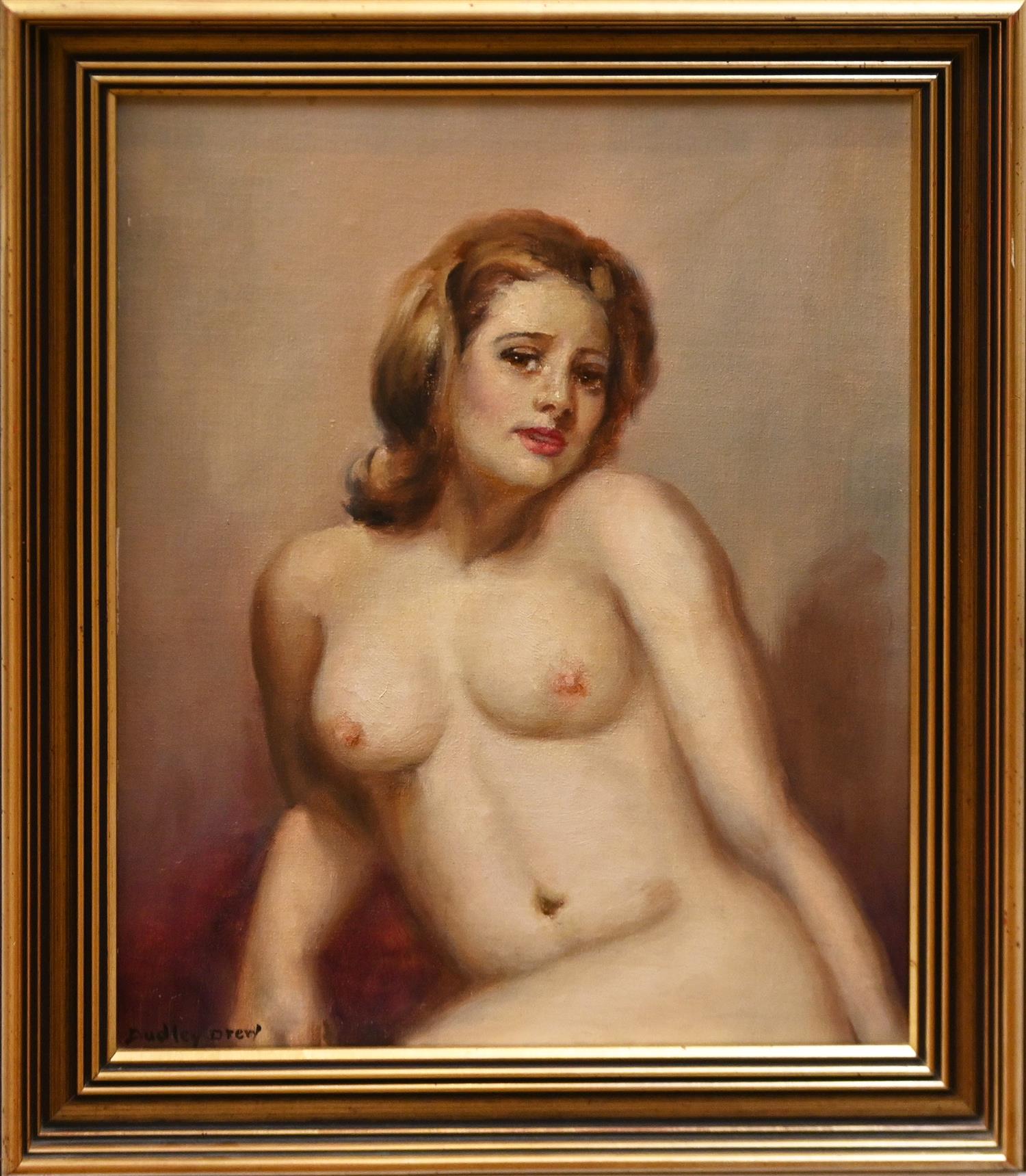 DUDLEY DREW, NUDE, OIL ON BOARD, SIGNED LOWER LEFT, 48 X 38.5CM, FRAME SIZE: 60 X 50CM