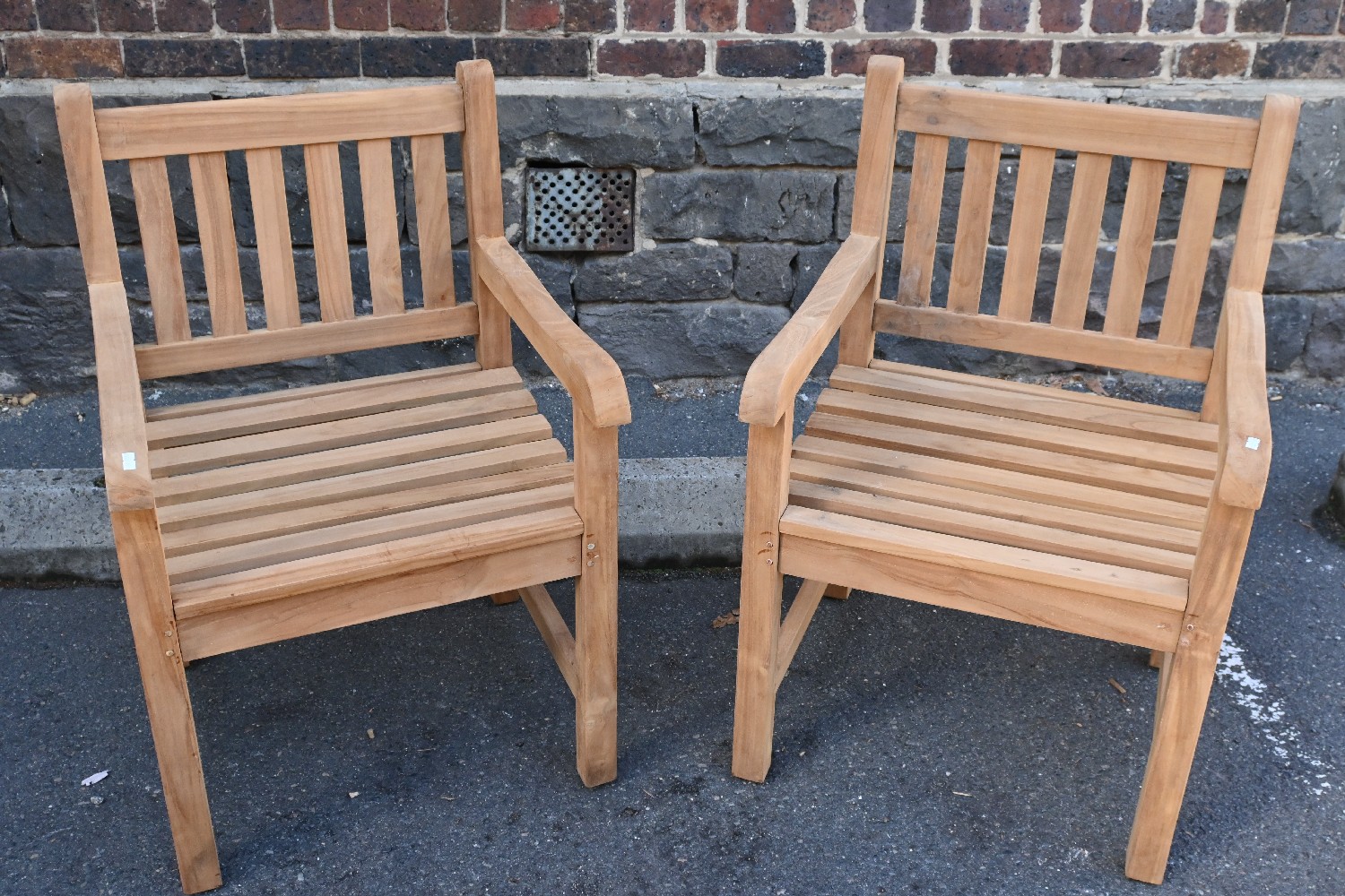 A PAIR OF TEAK CARVER CHAIRS (A/F) (94H X 60W X 65D CM) (PLEASE NOTE THIS HEAVY ITEM MUST BE REMOVED BY CARRIERS AT THE CUSTOMER'S EXPENSE. LEONARD JOEL STAFF CANNOT ASSIST CARRYING THIS ITEM) (X-LARGE ITEM)