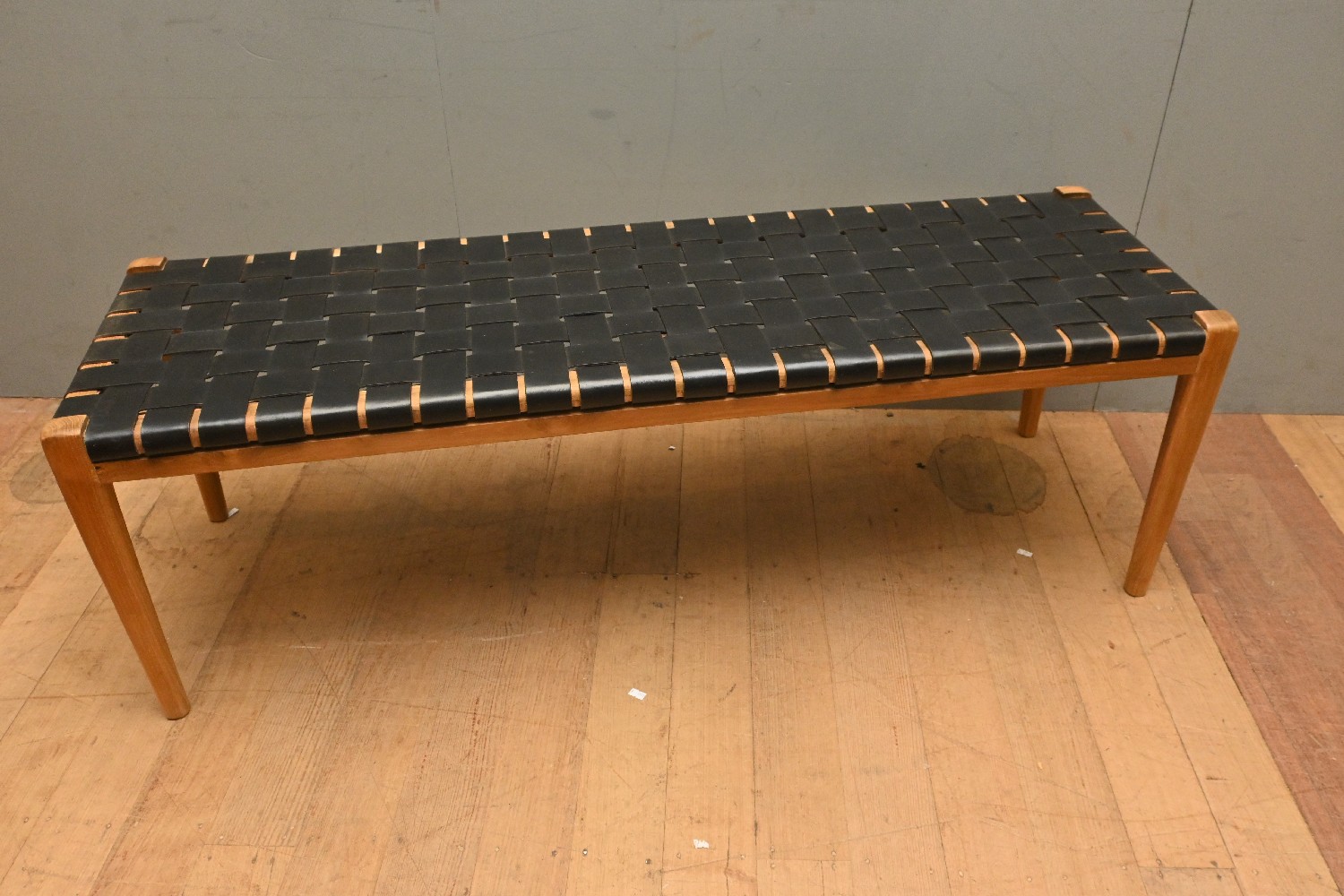 A TEAK & LEATHER BENCH SEAT (45H X 140W X 45D CM) (LEONARD JOEL DELIVERY SIZE: X-LARGE)