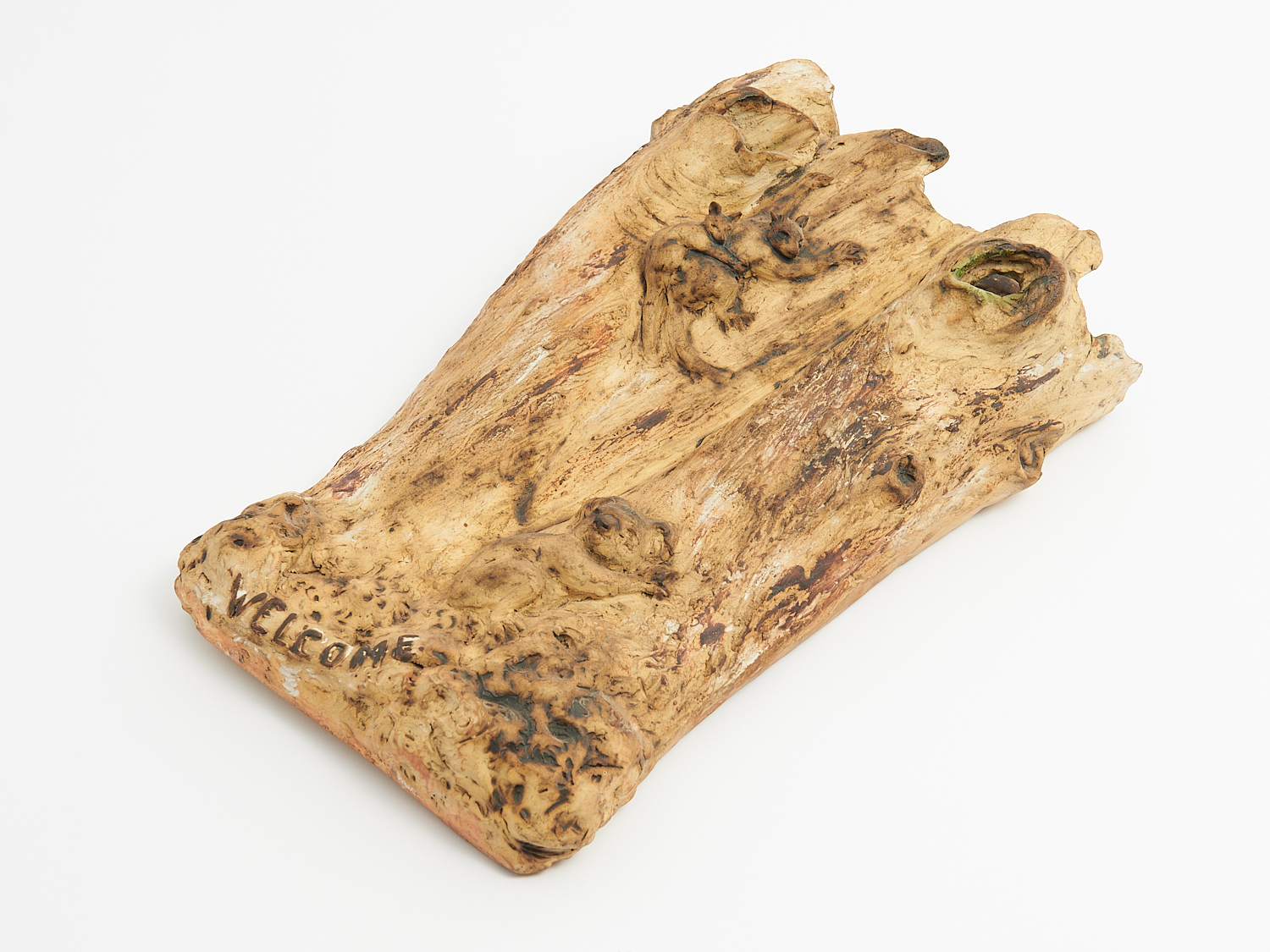 A WILLIAM RICKETTS EARTHENWARE WALL VASE, SIGNED (A/F, LOSS TO ONE KANGAROO EAR) H.40CM, LEONARD JOEL LOCAL DELIVERY: MEDIUM