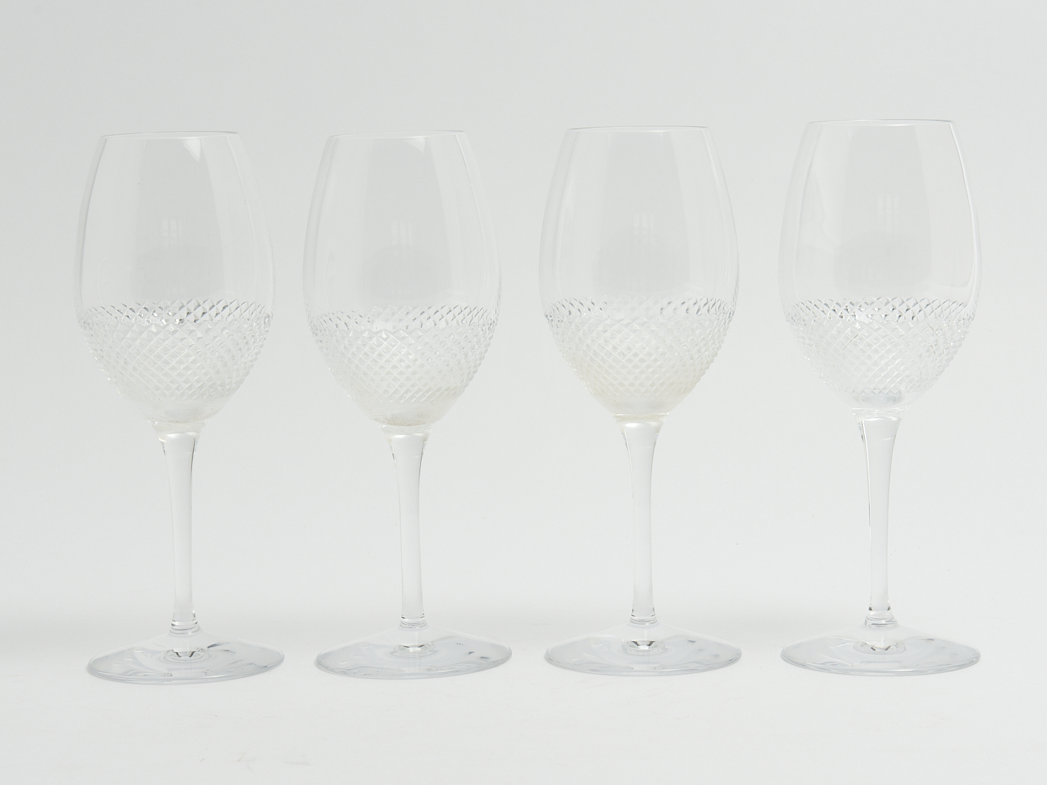 A SET OF FOUR WATERFORD "LUME" CRYSTAL WINE GLASSES BY JOHN ROCHA H.23CM, LEONARD JOEL LOCAL DELIVERY: MEDIUM