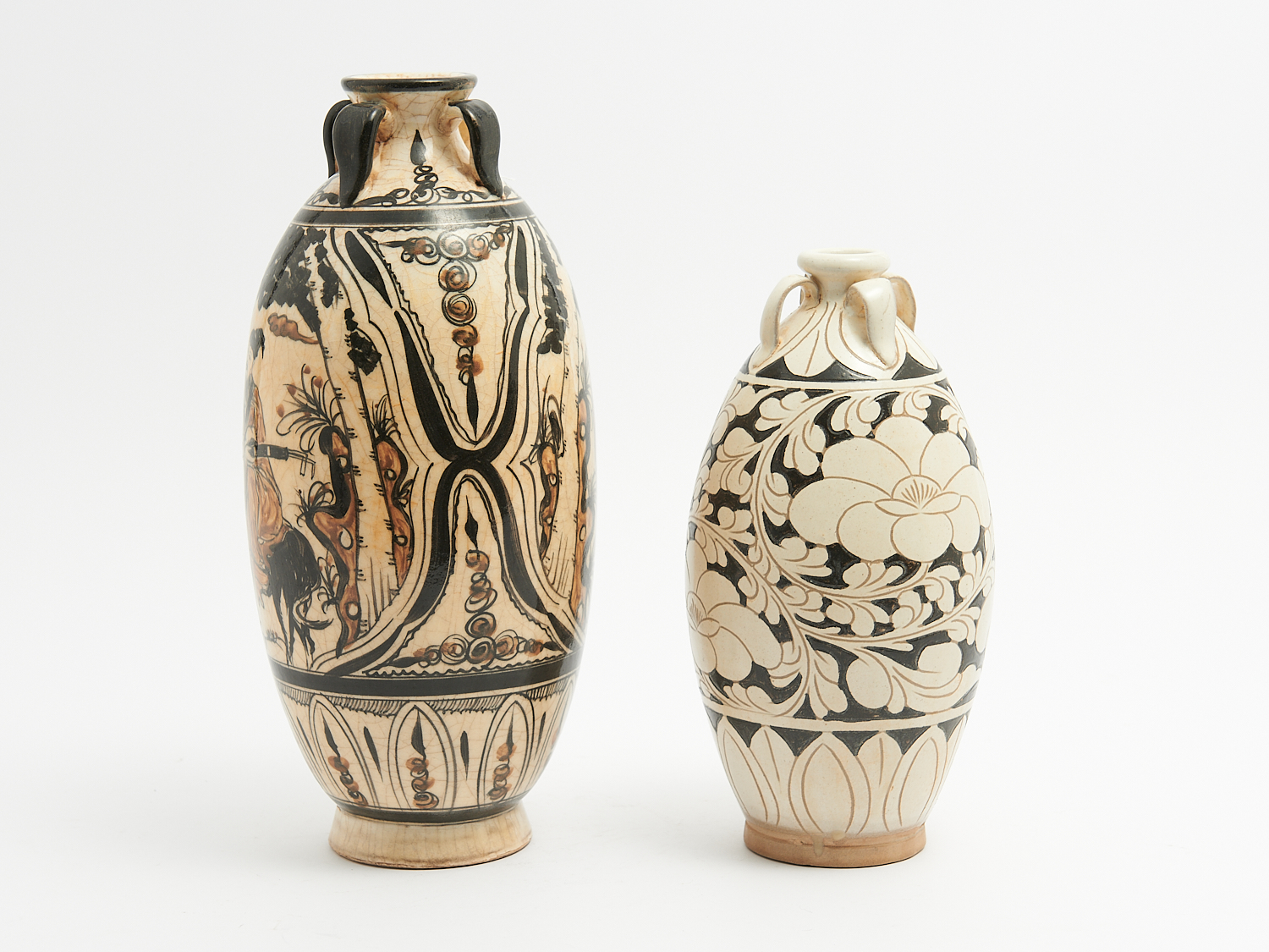 TWO CHIZOU WARE STYLE VASES H.34CM (TALLEST), LEONARD JOEL LOCAL DELIVERY: MEDIUM