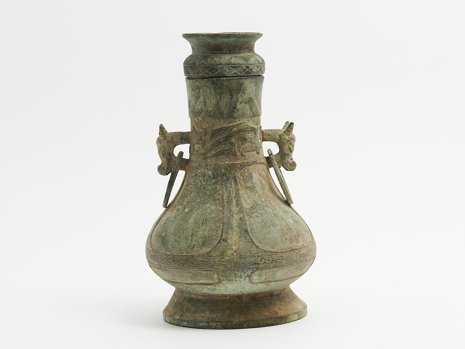A THAI ARCHAISTIC BRONZE LIDDED URN WITH RING HANDLES H.29CM, LEONARD JOEL DELIVERY SIZE: SMALL