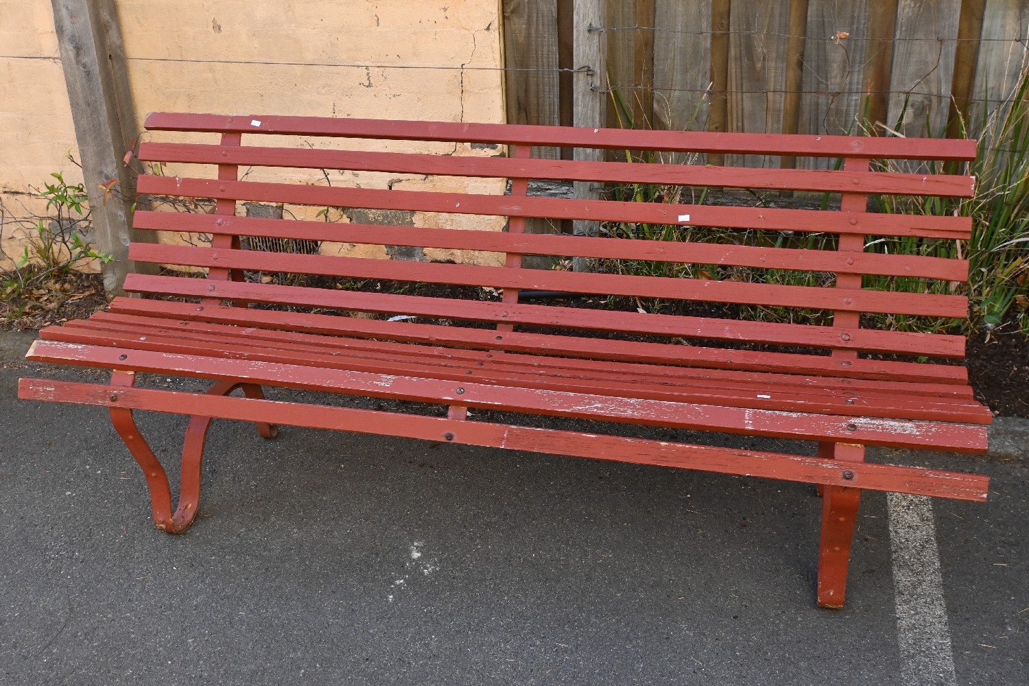 A 1950/60'S TIMBER SLAT BENCH (A/F) (80H X 184W X 66D CM) (PLEASE NOTE THIS HEAVY ITEM MUST BE REMOVED BY CARRIERS AT THE CUSTOMER'S EXPENSE. LEONARD JOEL STAFF CANNOT ASSIST CARRYING THIS ITEM) (X-LARGE ITEM)