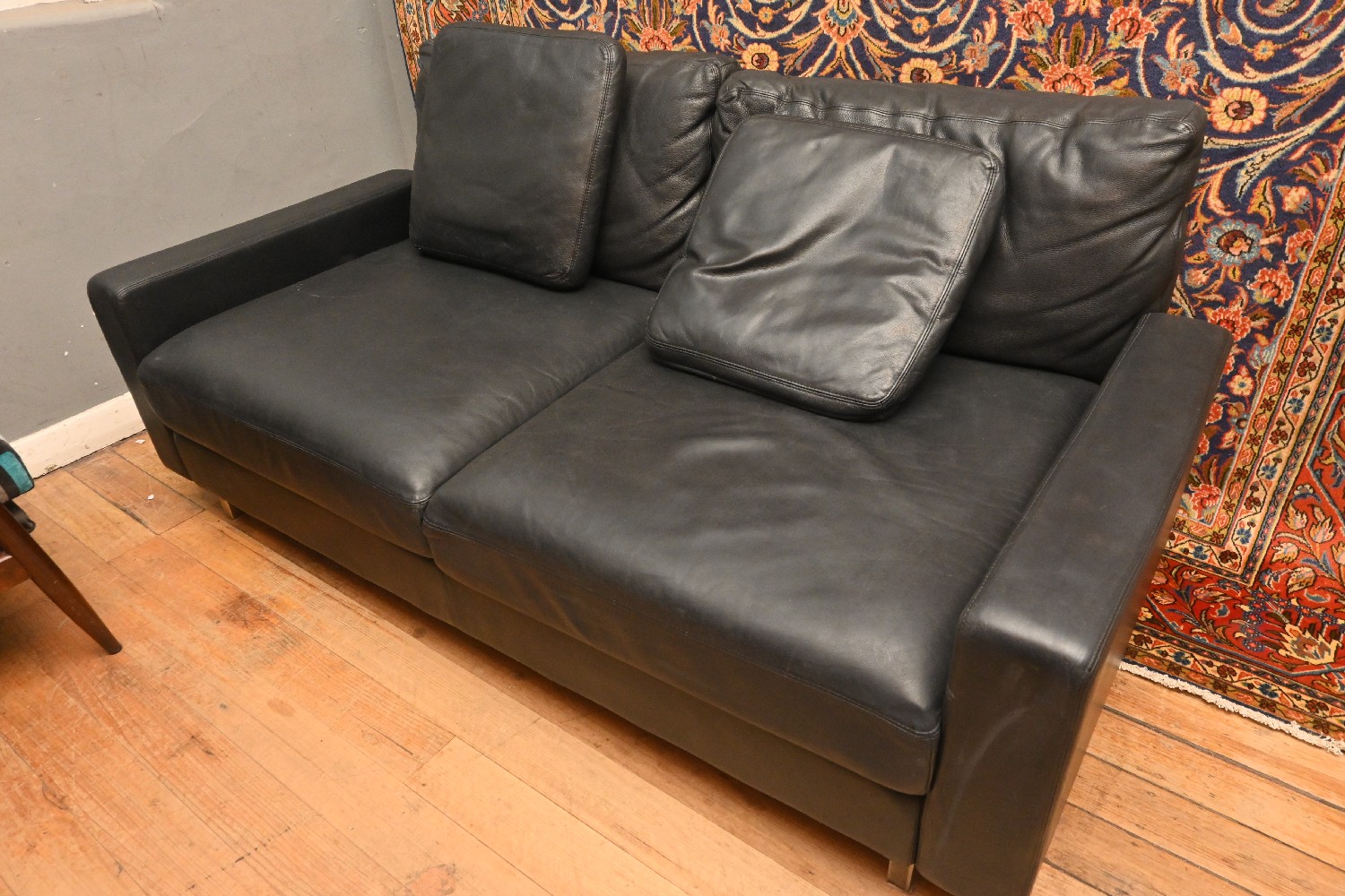 A LEATHER TWO SEATER AUSTRALIAN SOFA FOR KING FURNITURE (A/F) (82H X 188W X 106D CM) (PLEASE NOTE THIS HEAVY ITEM MUST BE REMOVED BY CARRIERS AT THE CUSTOMER'S EXPENSE. LEONARD JOEL STAFF CANNOT ASSIST CARRYING THIS ITEM) (X-LARGE ITEM)