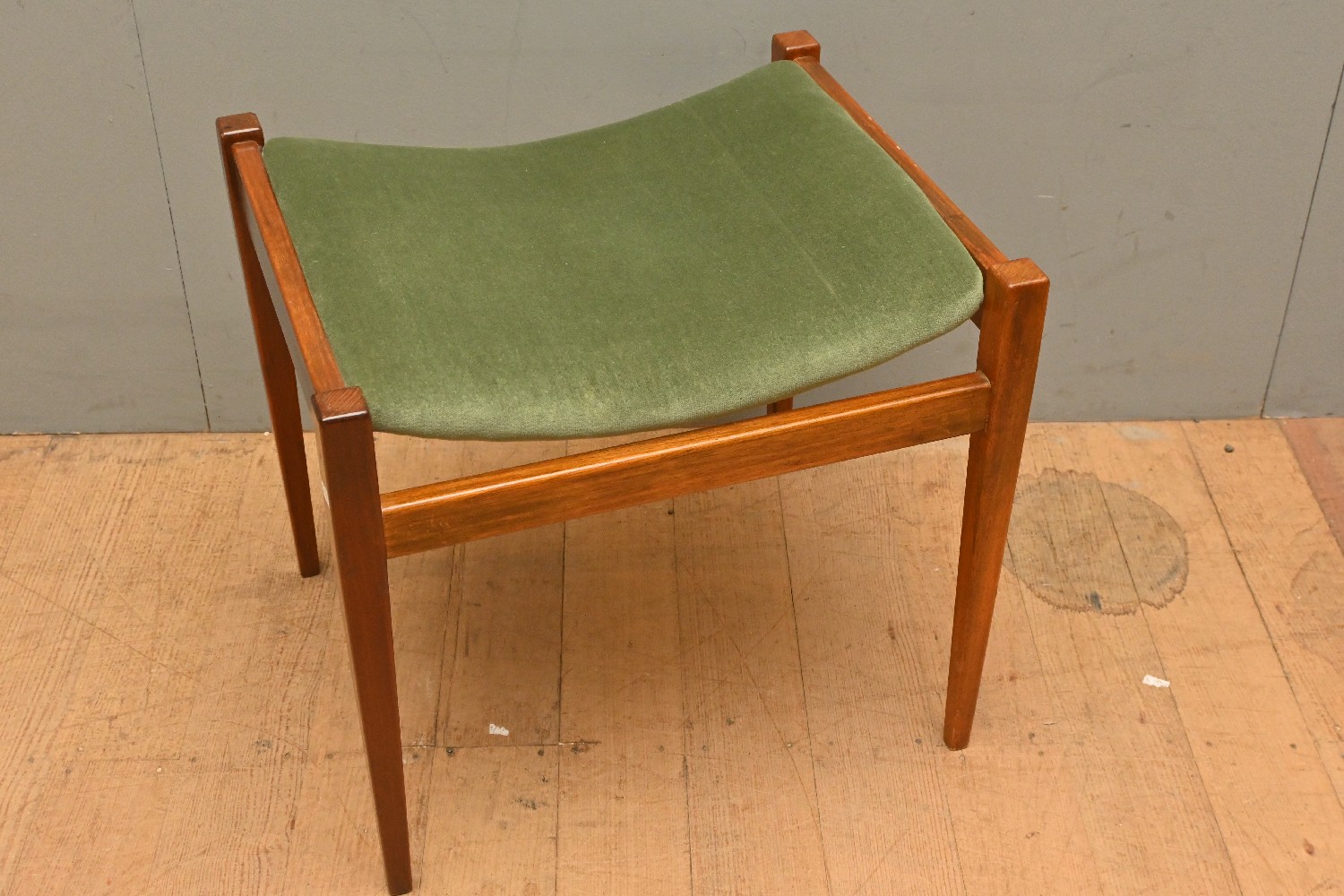 A PARKER TEAK AND UPHOLSTERED STOOL (47H X 52W X 45D CM) (LEONARD JOEL DELIVERY SIZE: LARGE)