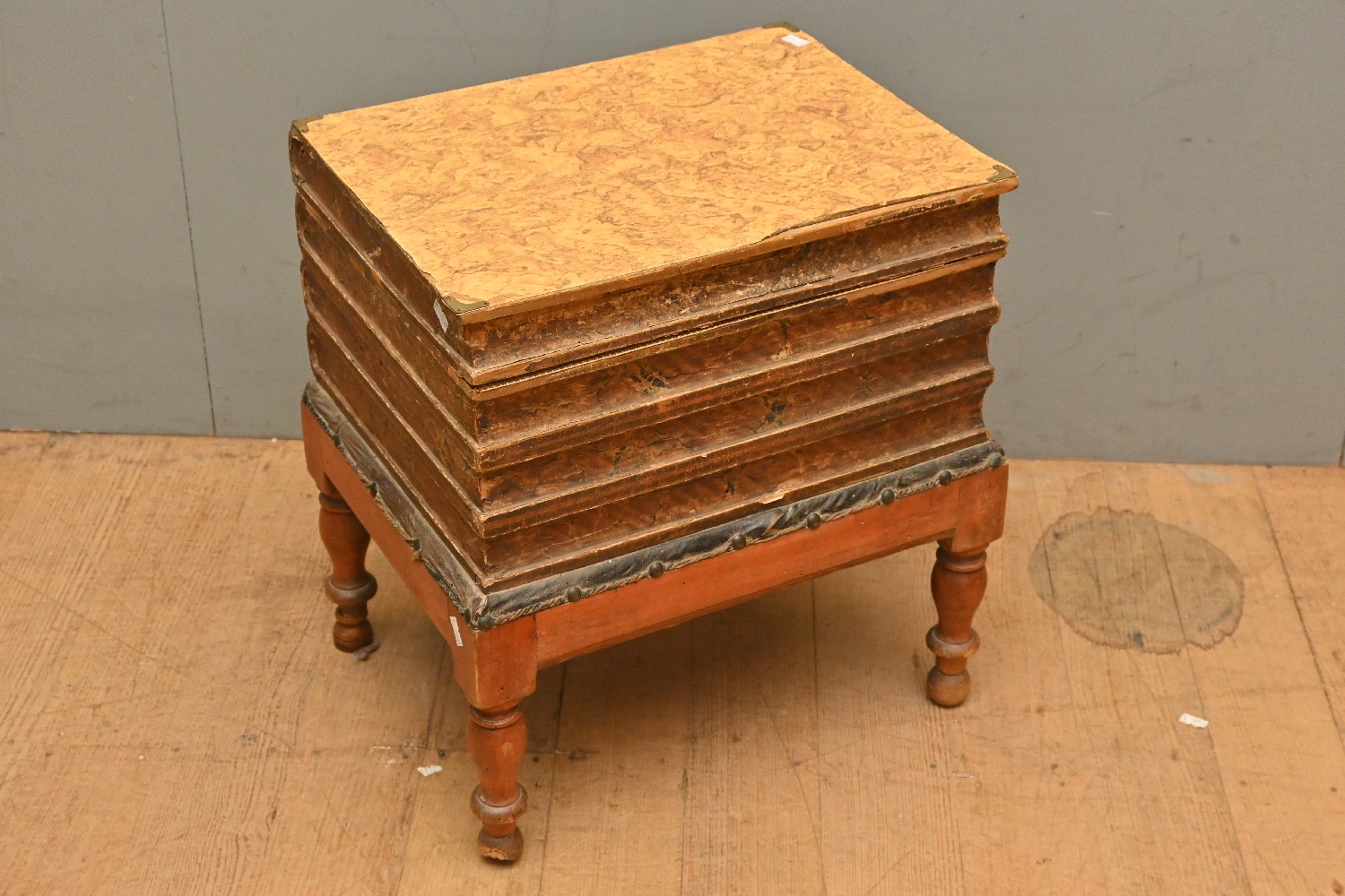 AN EARLY 20TH CENTURY BOOKFORM STORAGE BOX (A/F) (50H X 44W X 34D CM) (LEONARD JOEL DELIVERY SIZE: LARGE)