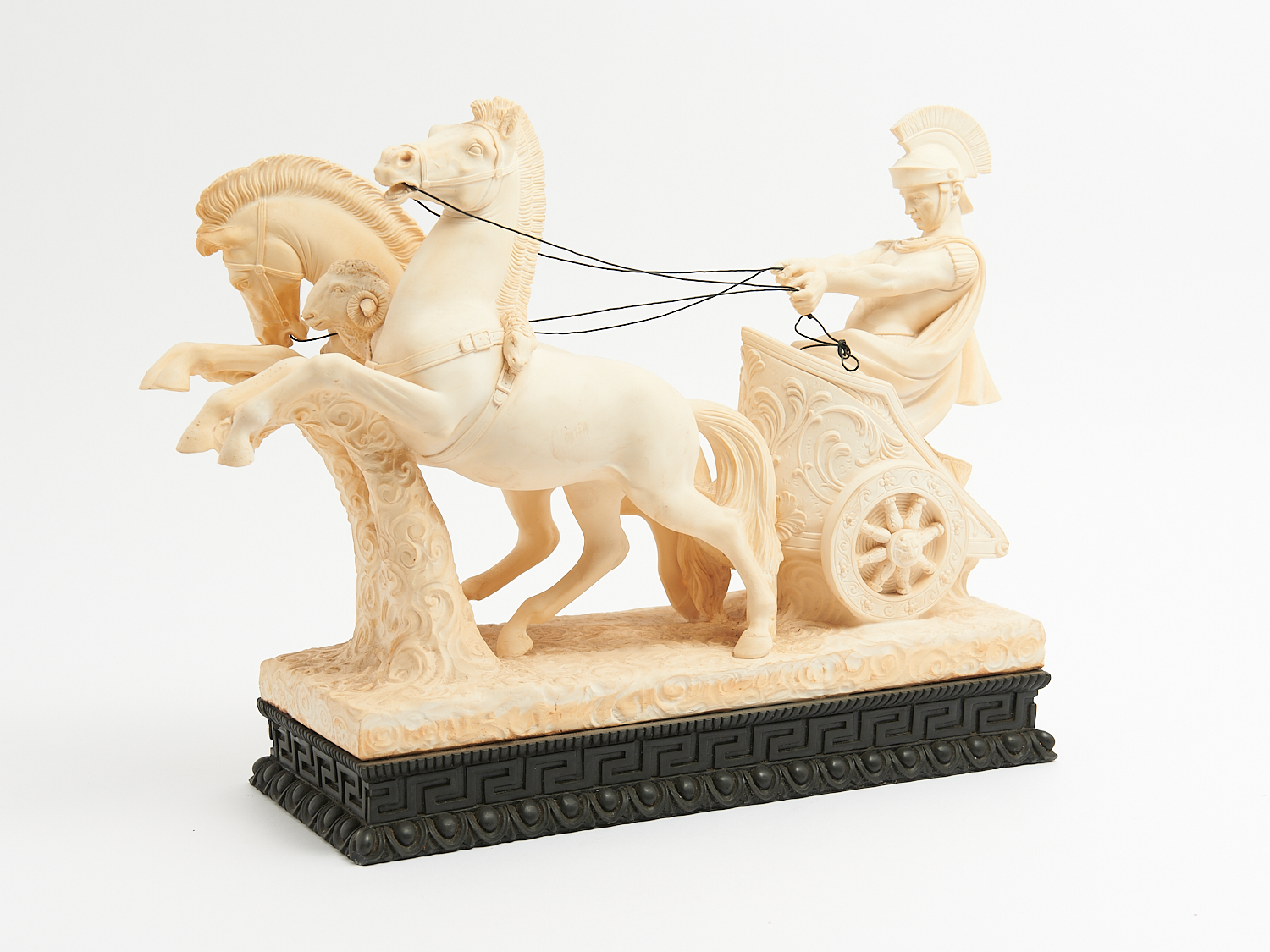 A RESIN CARVED CLASSICAL ROMAN CHARIOT L.50CM, LEONARD JOEL DELIVERY SIZE: MEDIUM