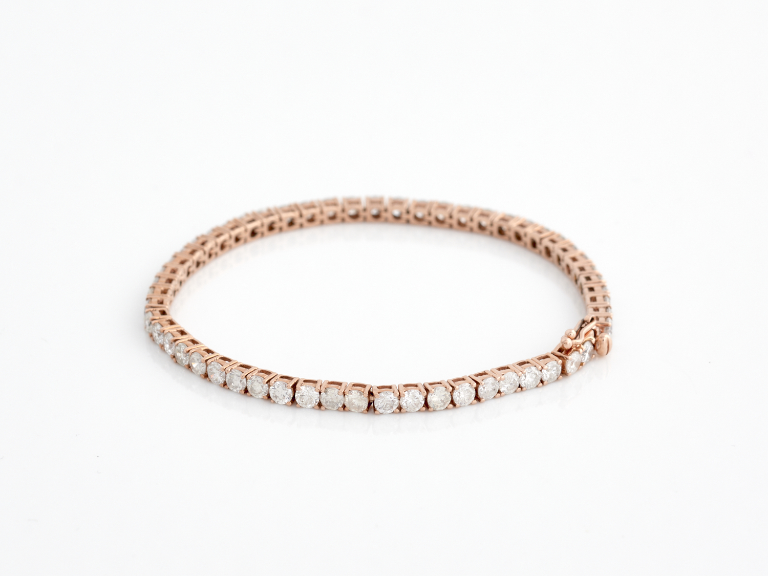 A DIAMOND LINE BRACELET IN 14CT ROSE GOLD, DIAMONDS TOTALLING APPOXIMATELY 4.16CTS, LENGTH 155MM, WITH VALUATION