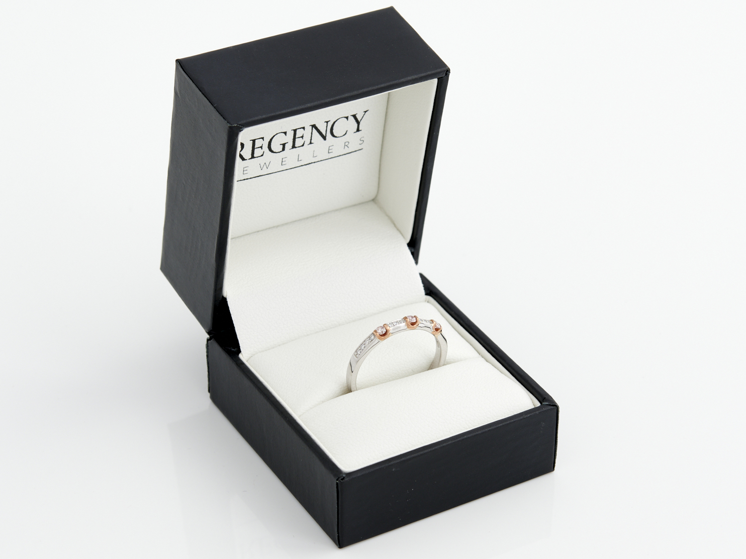 AN ARGYLE PINK DIAMOND AND DIAMOND RING IN TWO-TONE 9CT GOLD, RING SIZE O, ARGYLE LOT NUMBER 1548830