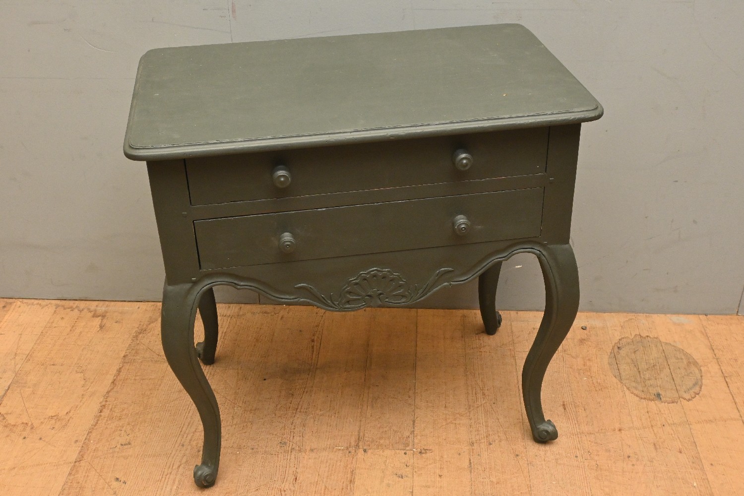 A GREEN-PAINTED LOW SIDE TABLE IN LOUIS XV MANNER (71H X 71W X 42D CM) (LEONARD JOEL DELIVERY SIZE: LARGE)