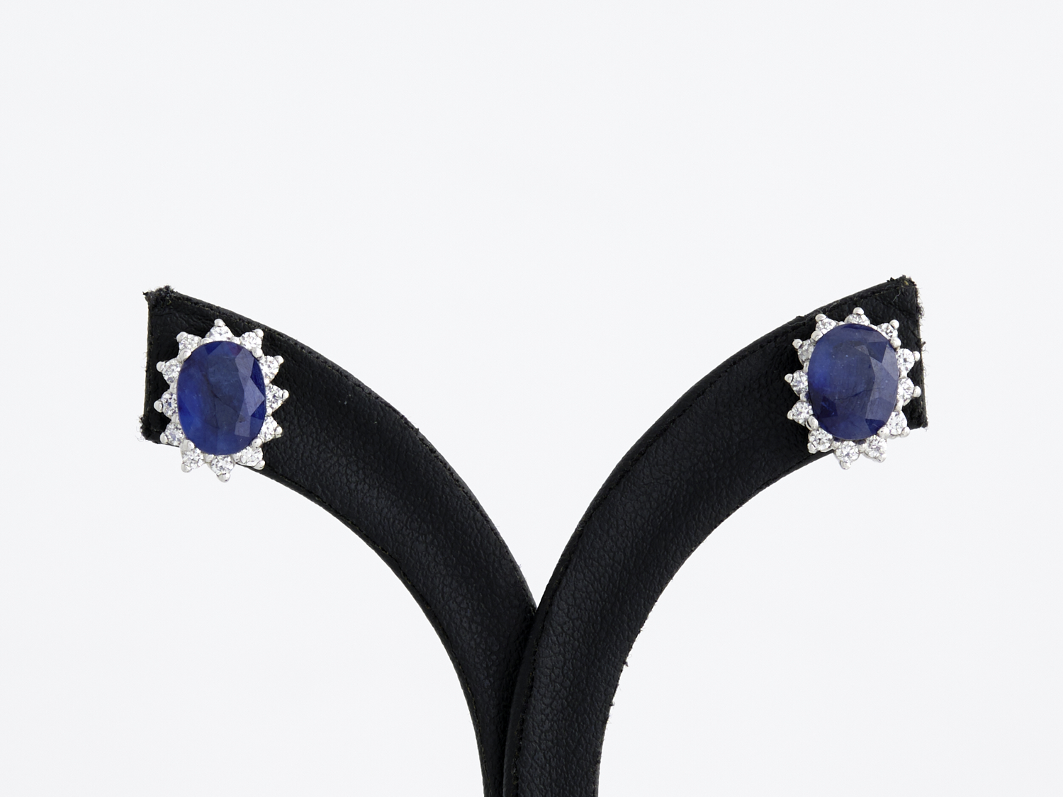 A PAIR OF SAPPHIRE AND DIAMOND EARRINGS IN 18CT WHITE GOLD, TO POST AND BUTTERFLY FITTINGS, 4.4GMS