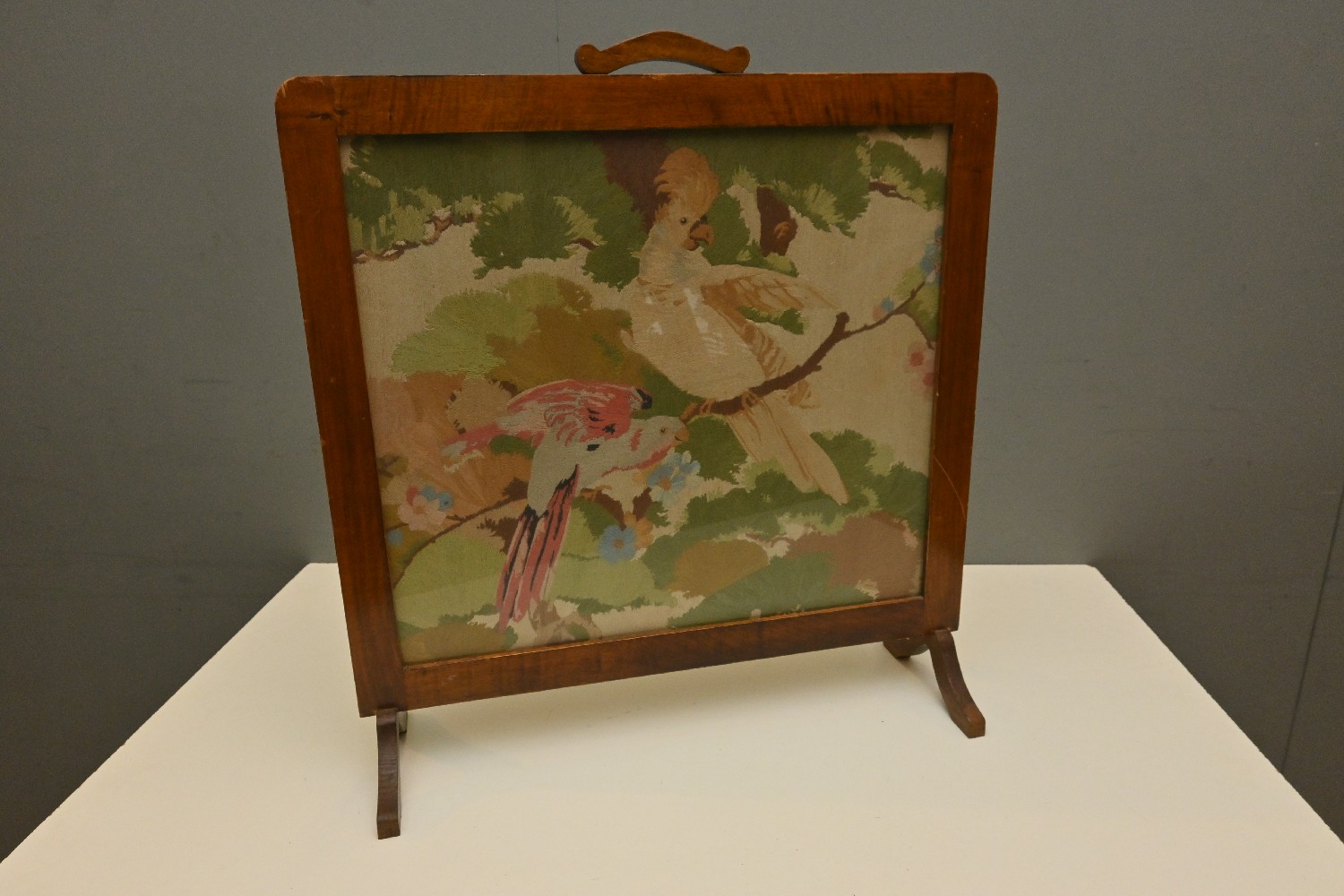 AN EARLY 20TH CENTURYAUSTRALIAN SILK OAK FRAMED PARROT TAPESTRY FIRE SCREEN (66H X 65W CM) (LEONARD JOEL DELIVERY SIZE: LARGE)